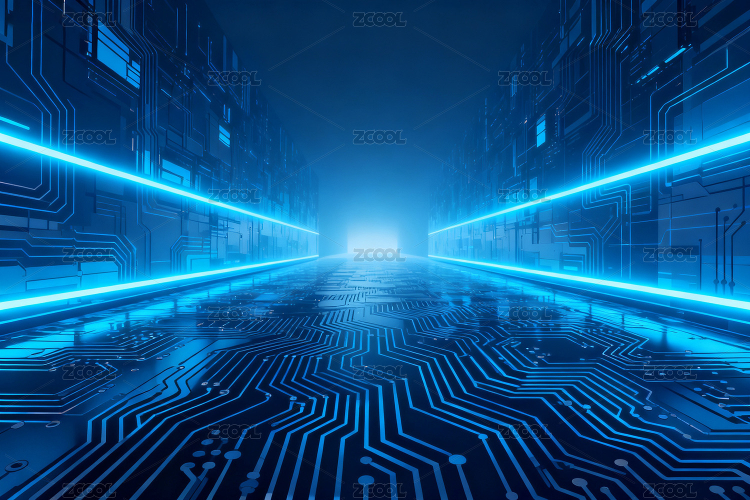 蓝色科技电路走廊未来感十足