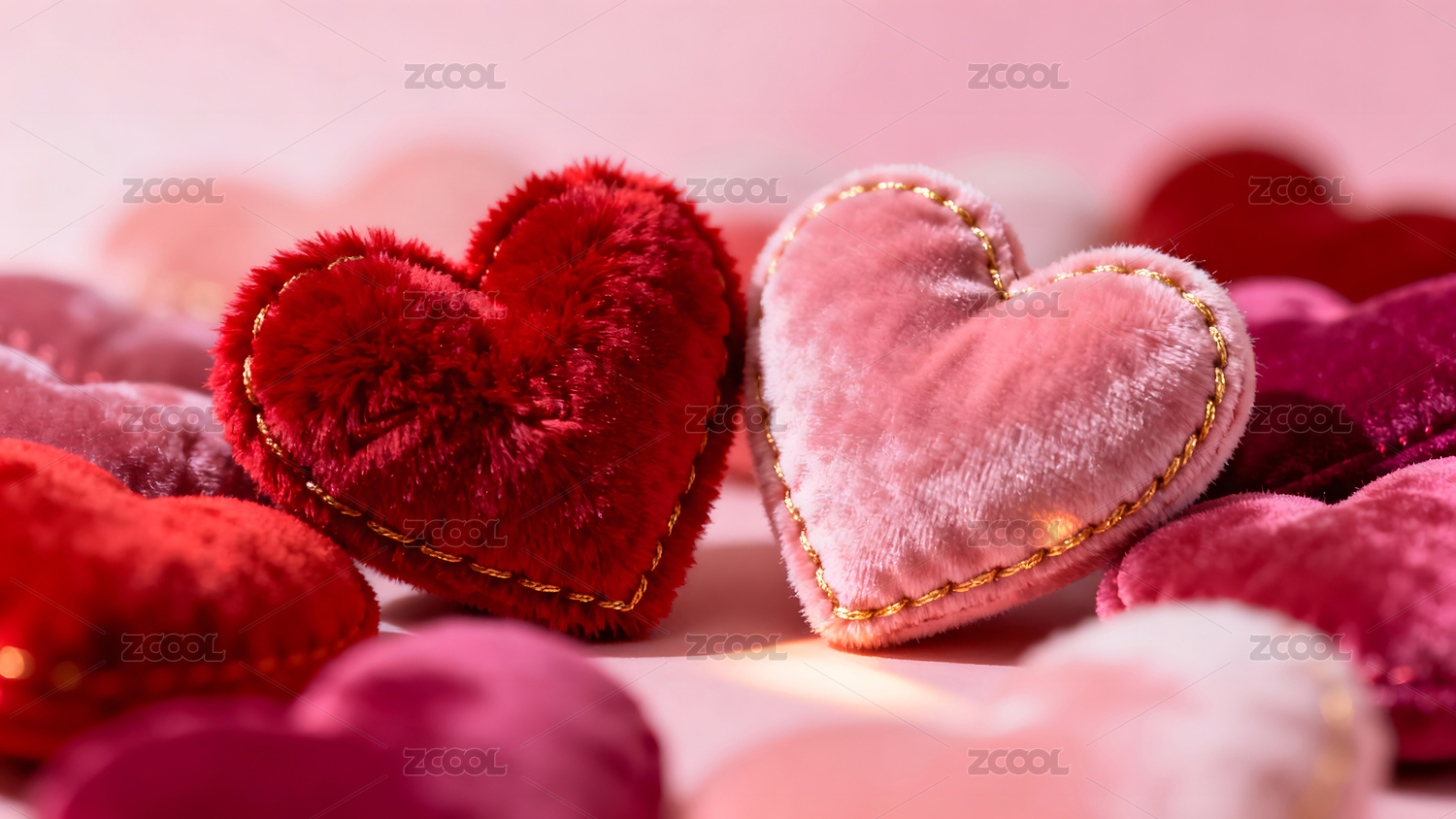 粉色,毛绒,数字,心形,字母,可爱,梦幻,插画,背景,柔和