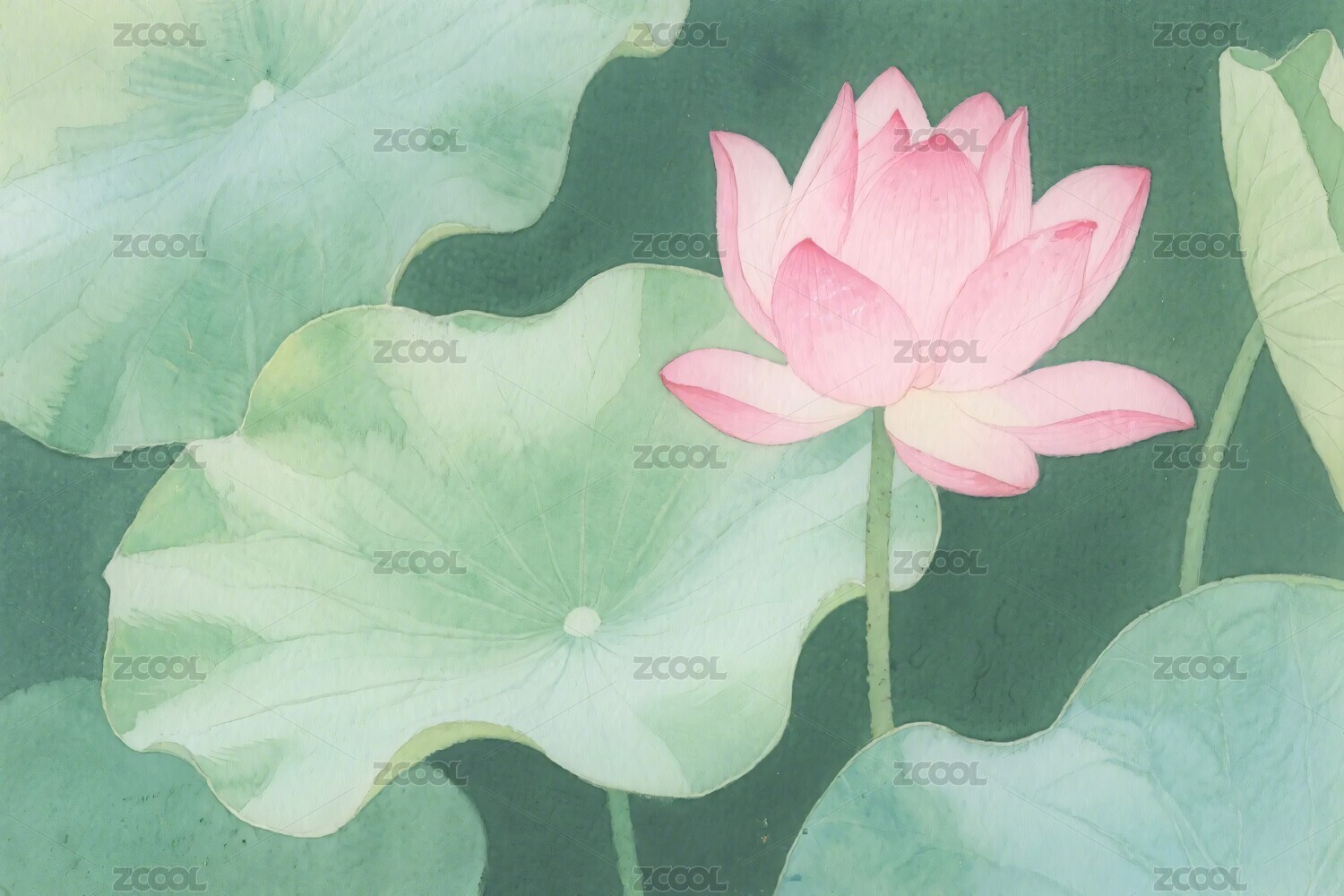 荷花,荷叶,水墨,插画,水彩,花卉,植物,lotus,watercolor,绿色