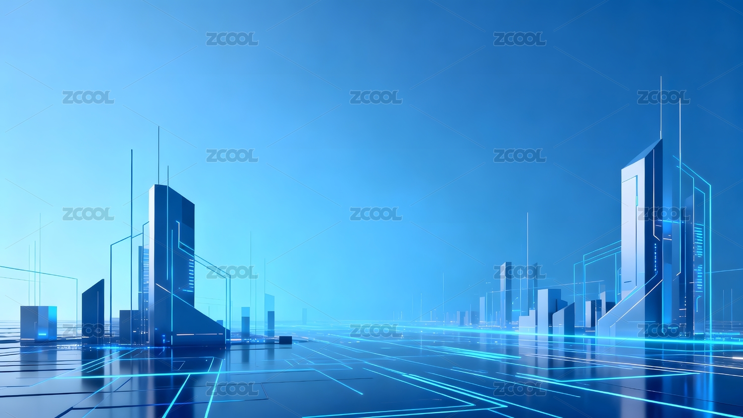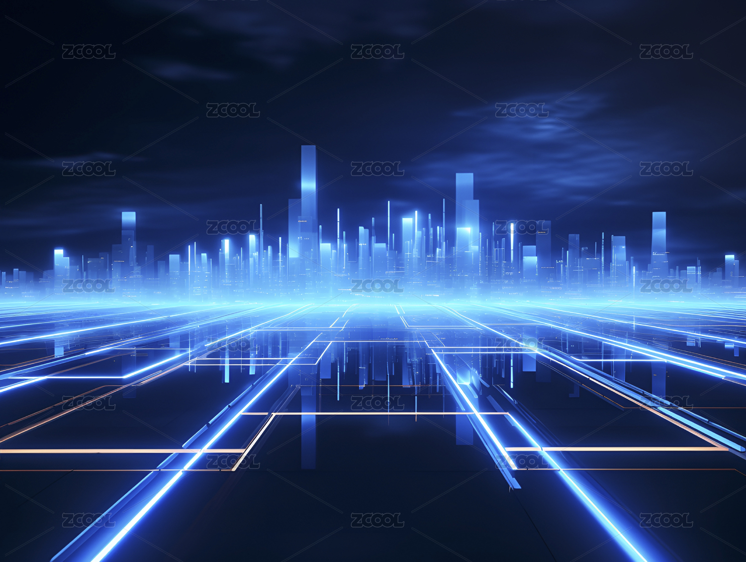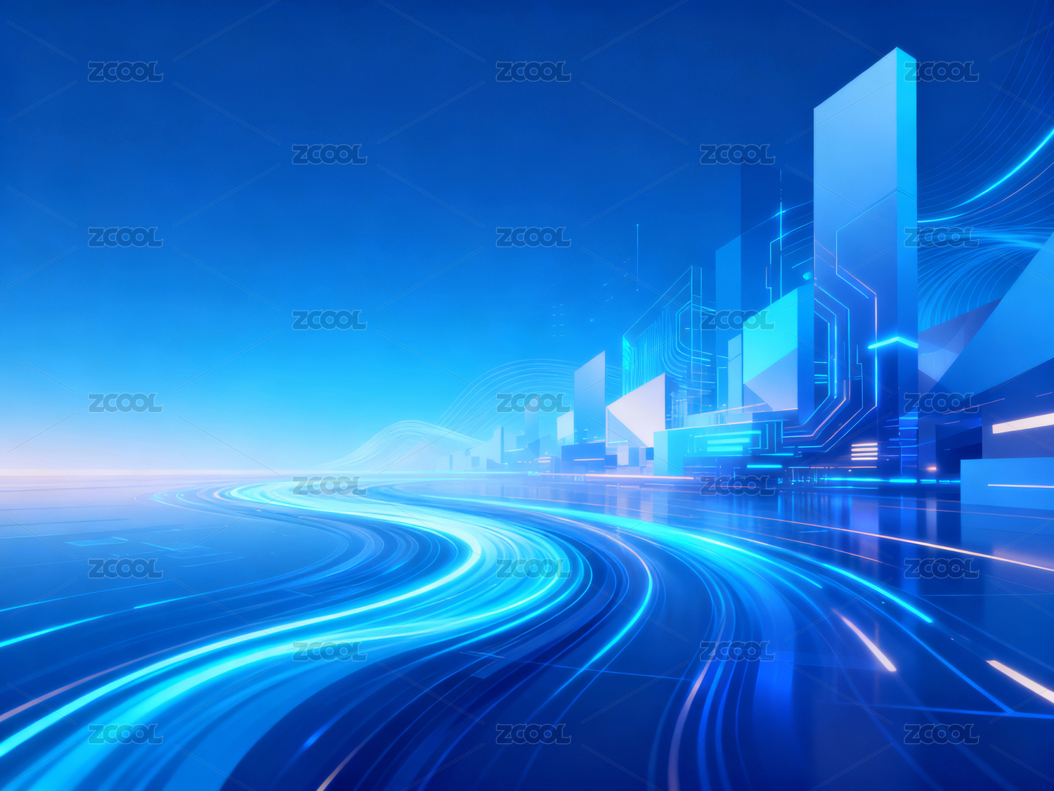 科技,城市,蓝色,光效,建筑,未来感,线条,数字,抽象,速度