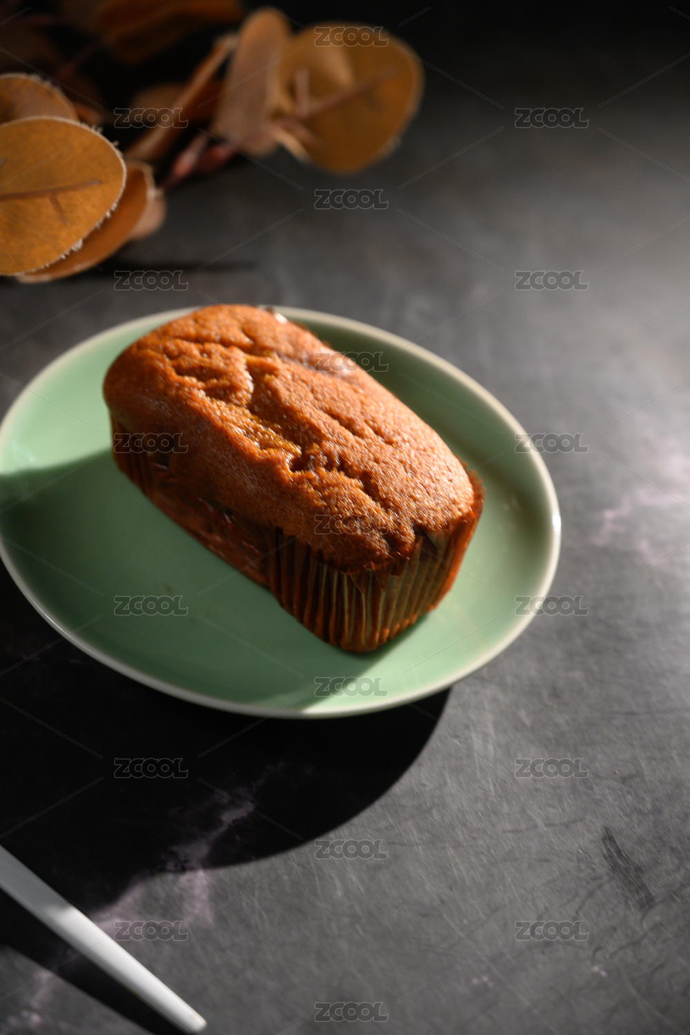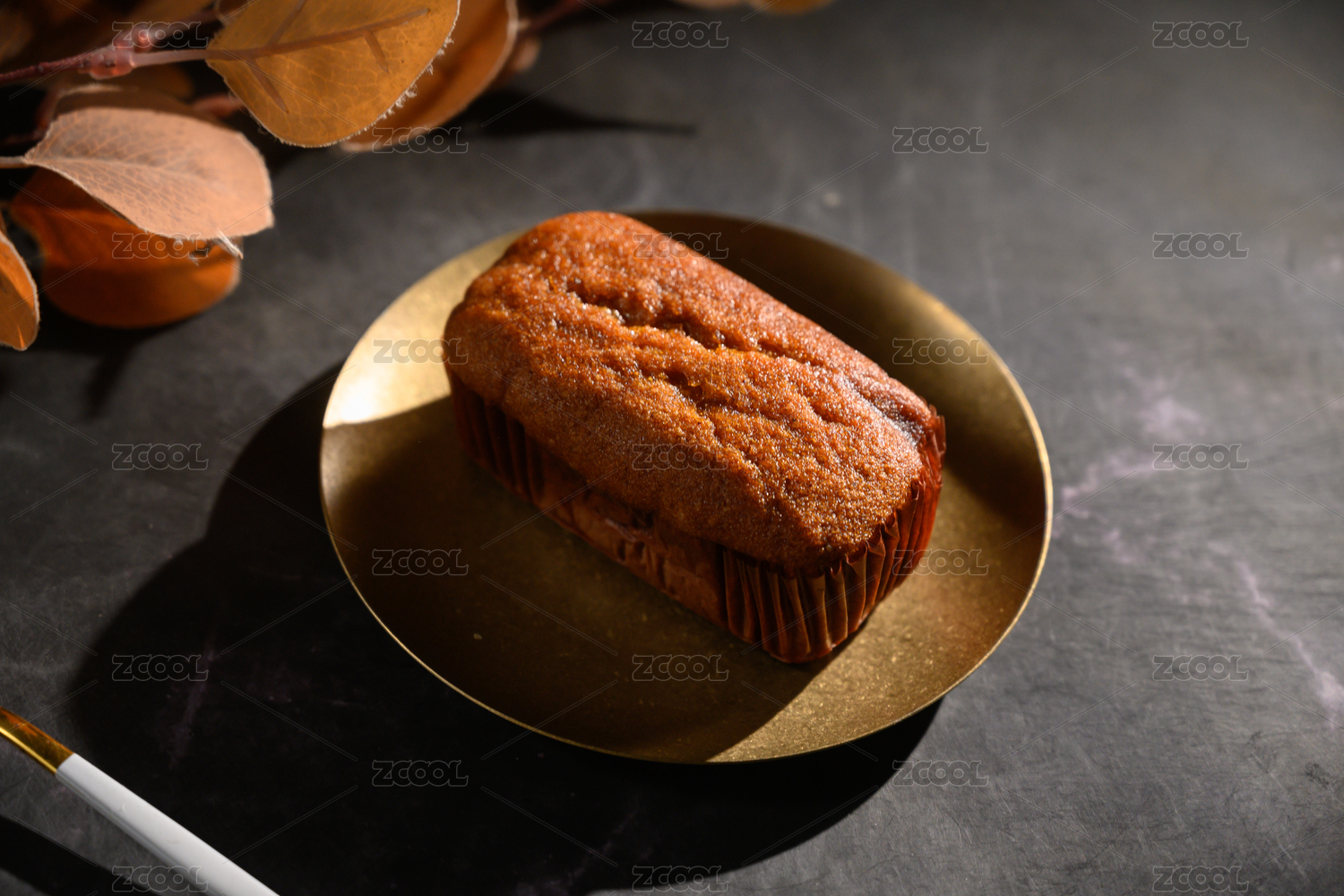 桌面上的盘子里的美味可口的红枣蛋糕