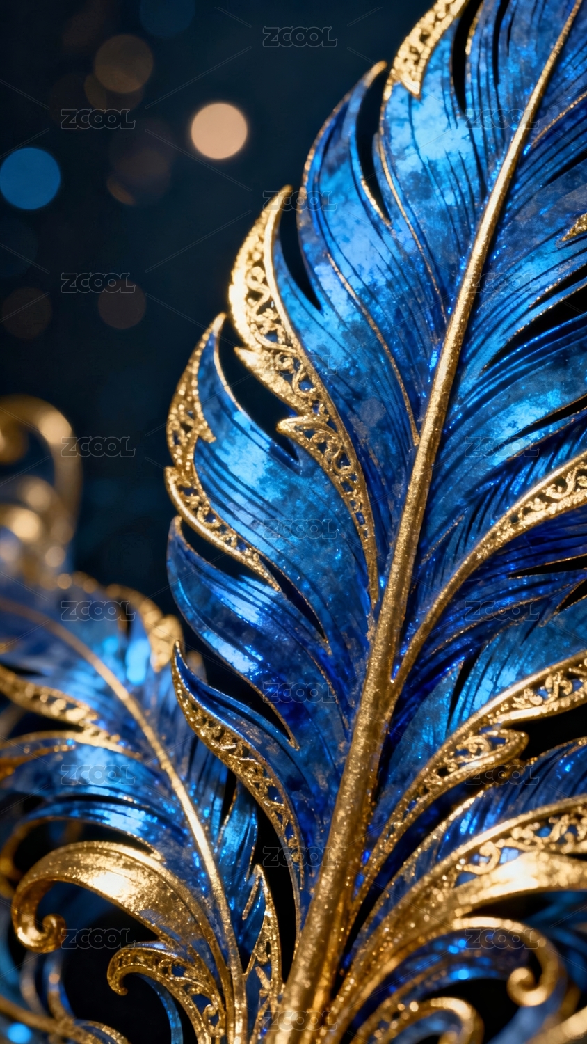 蓝金羽毛特写艺术