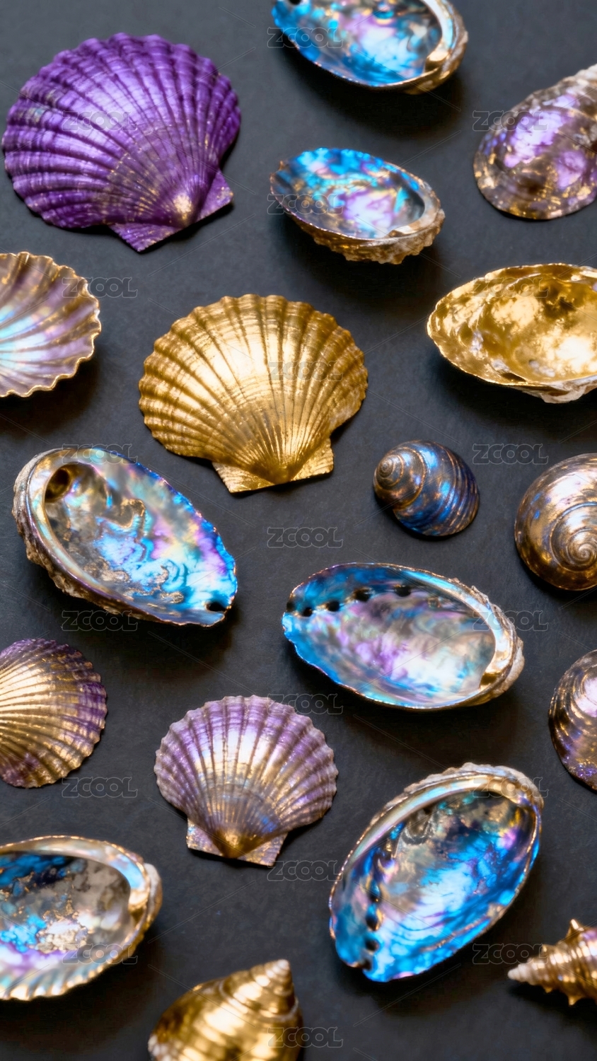彩色贝壳梦幻海洋装饰场景