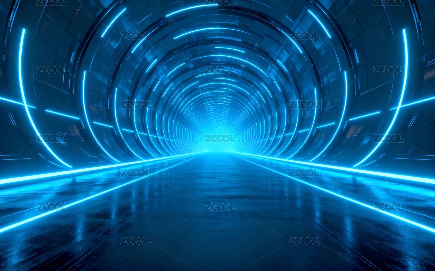 3D渲染科幻延伸蓝色未来科技感空间场景