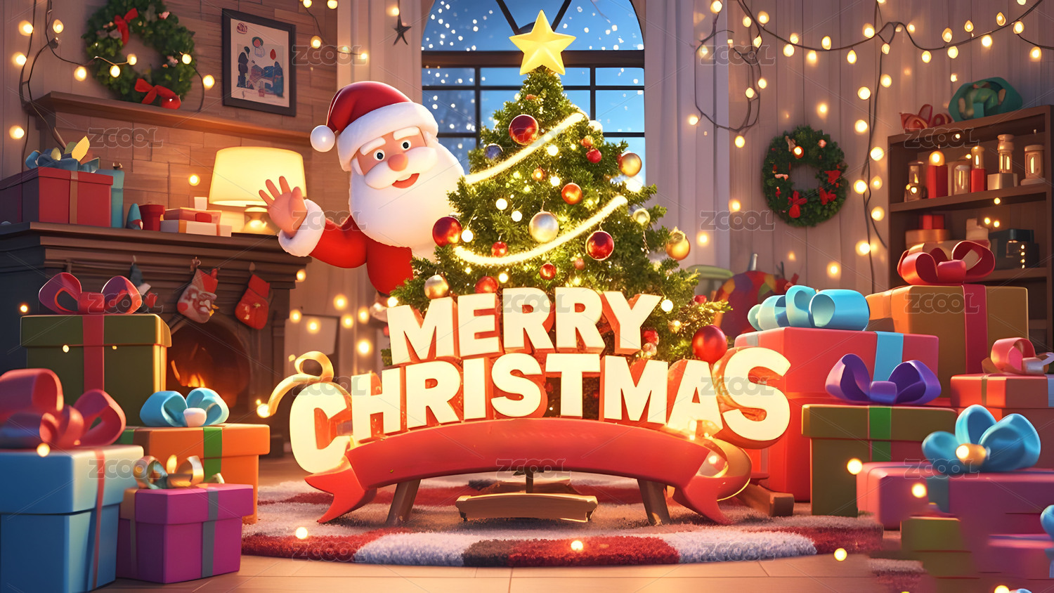 圣诞老人驾车送礼,雪景温馨节日氛围