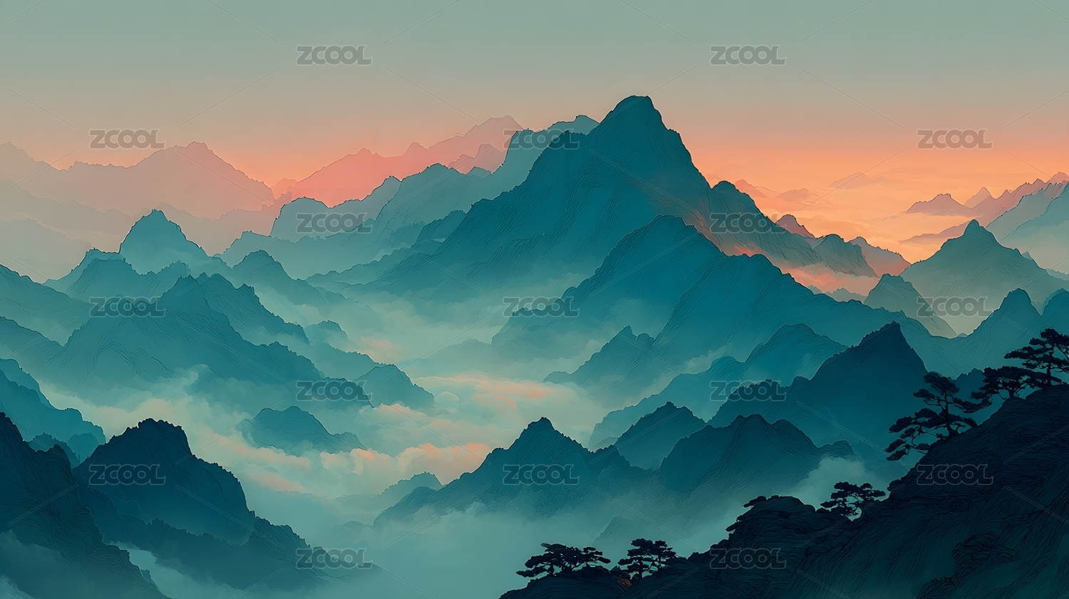 宁静,山峦,自然,风景,户外,静谧,景观,清新,薄雾,树木