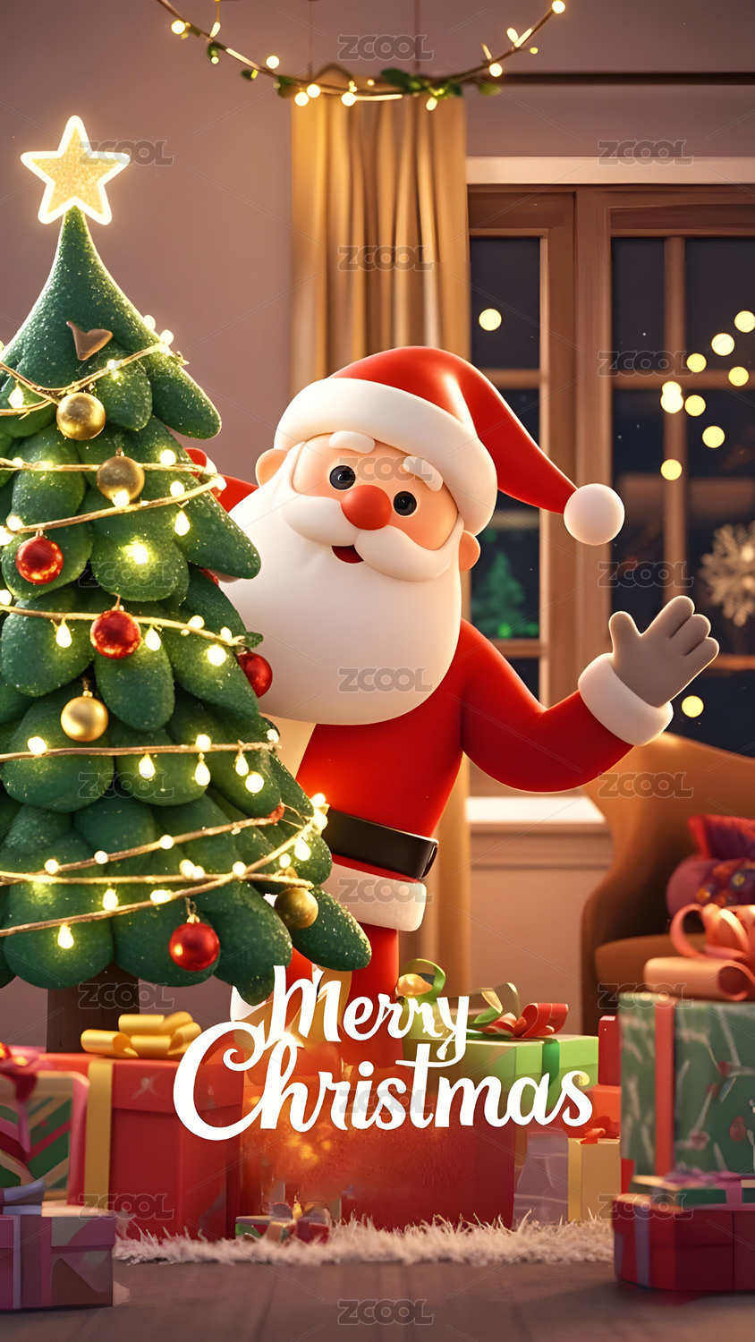 圣诞老人驾车送礼,雪景温馨节日氛围