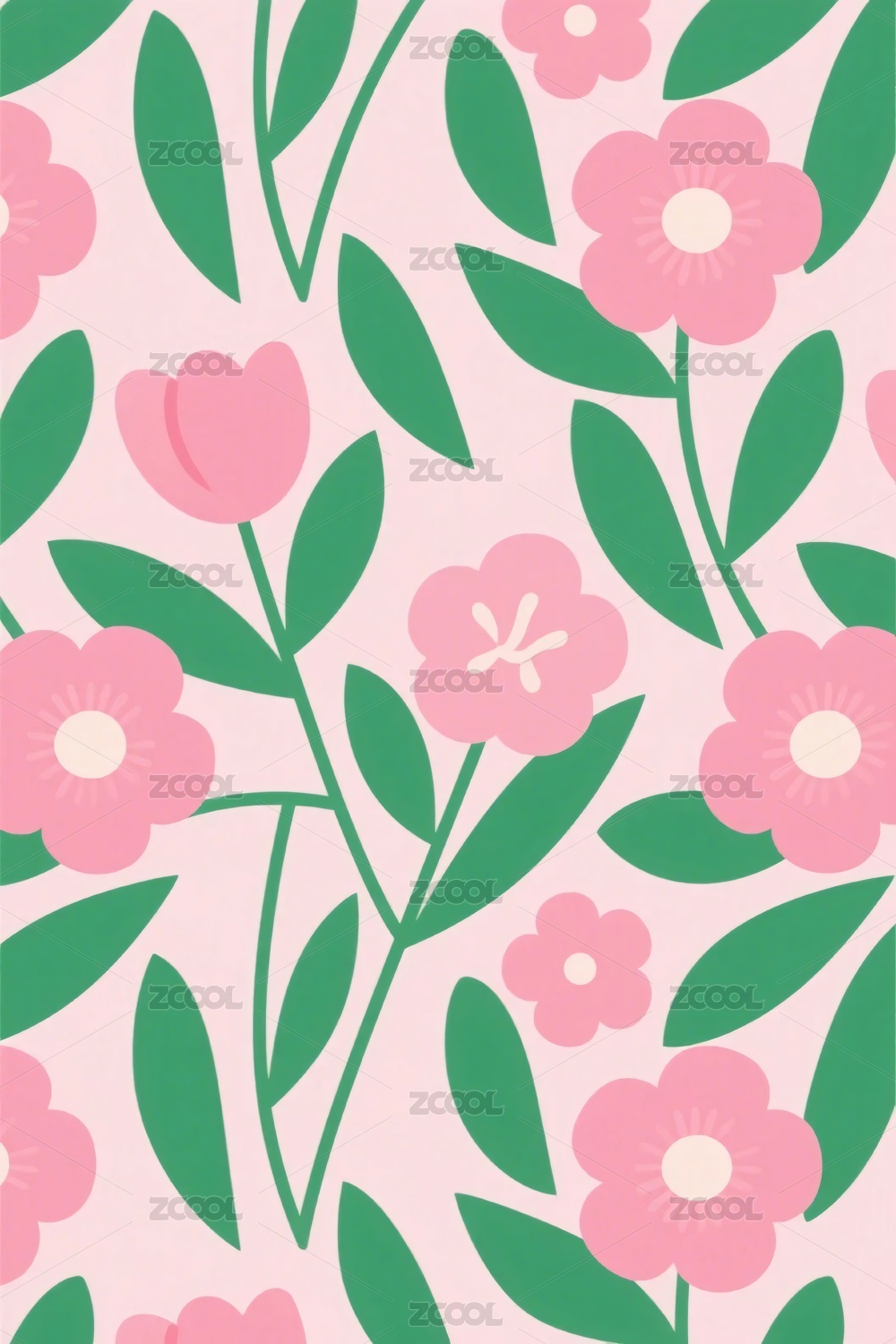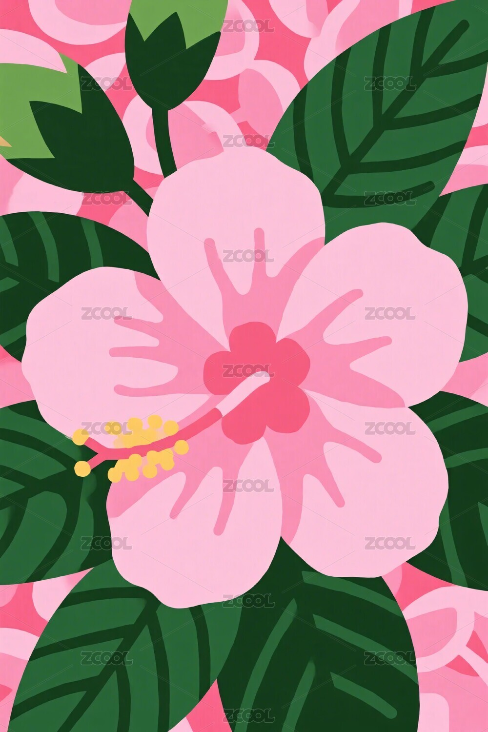 花朵,绿叶,插画,矢量,装饰,图案,植物,粉色,简洁,图形