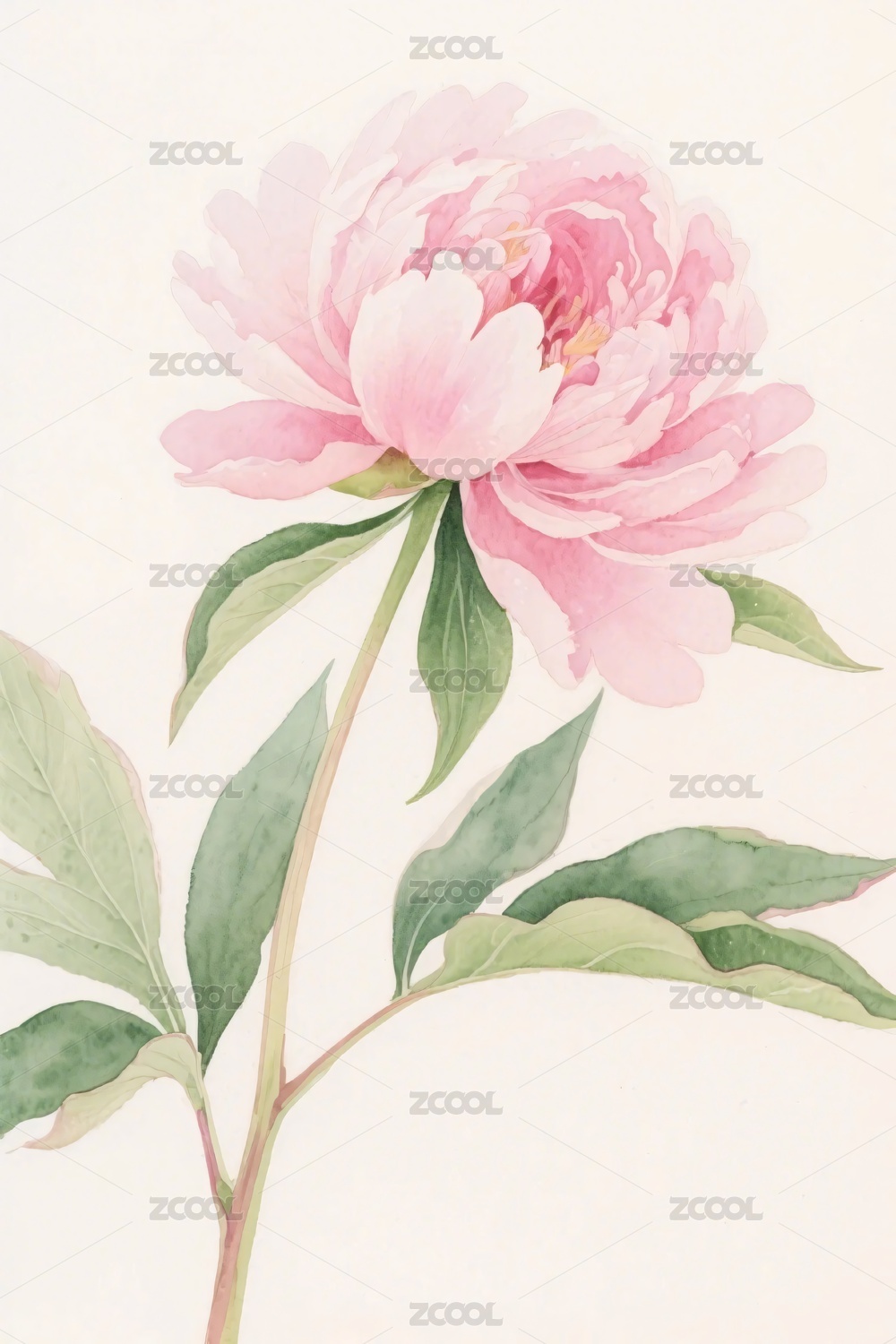 水彩粉色牡丹插画