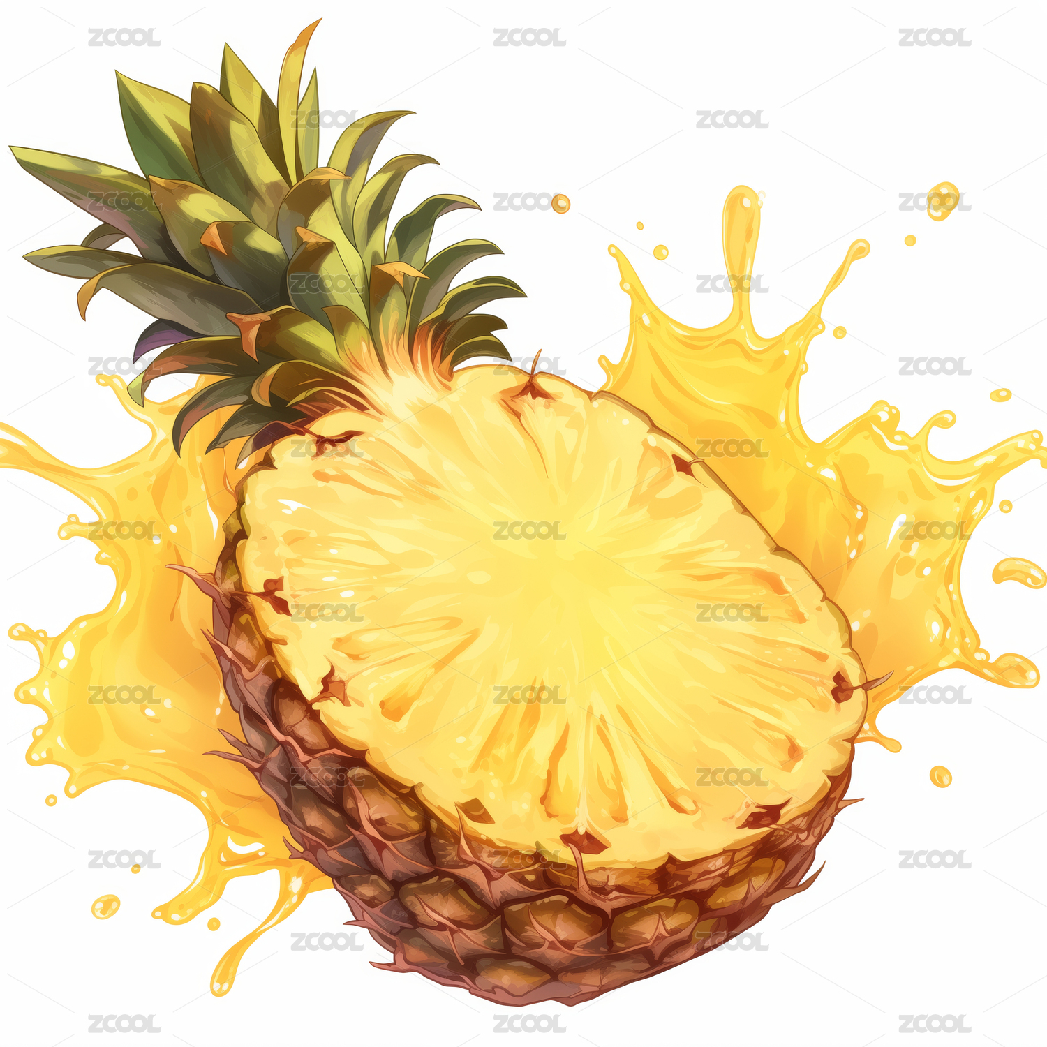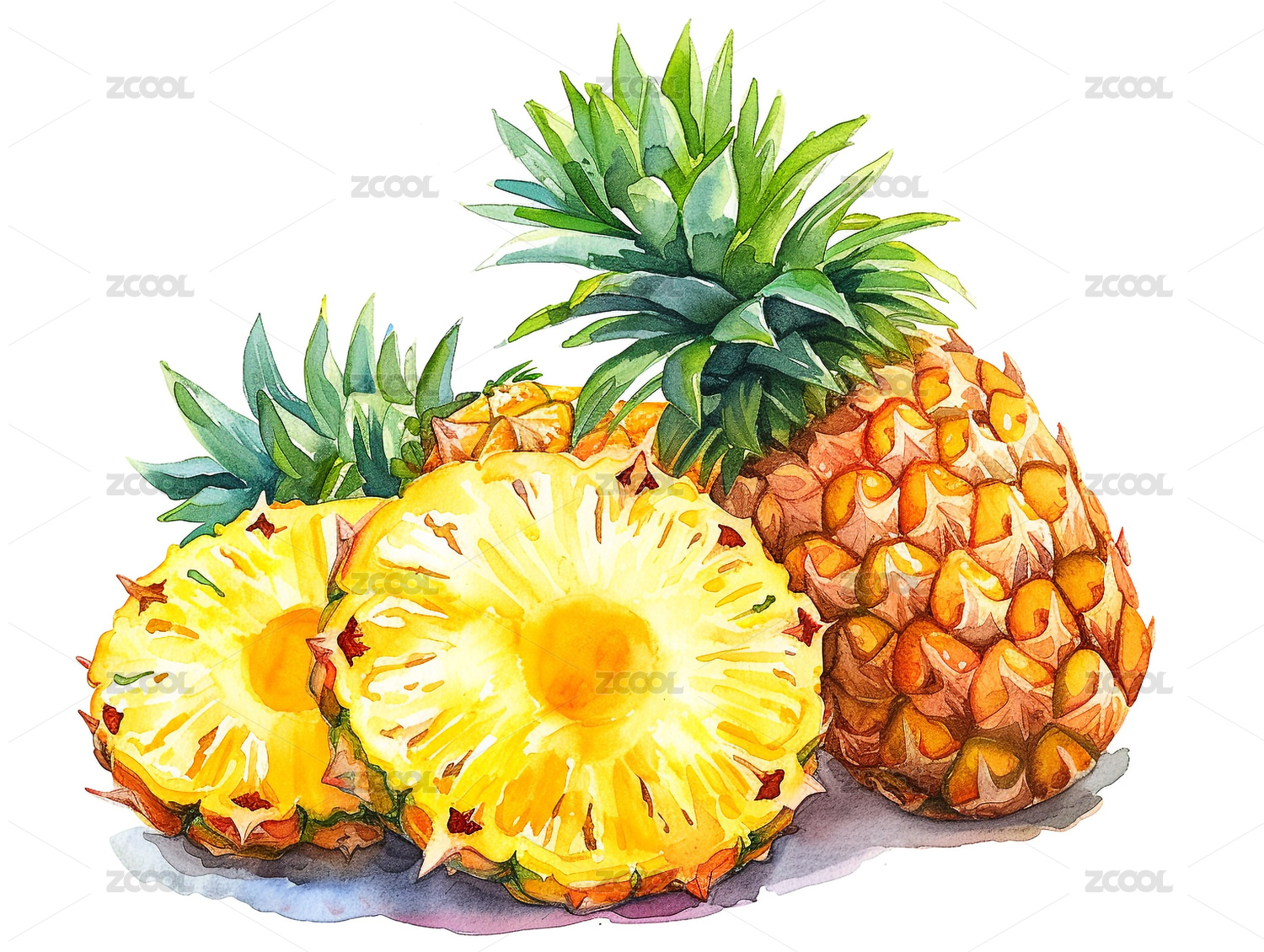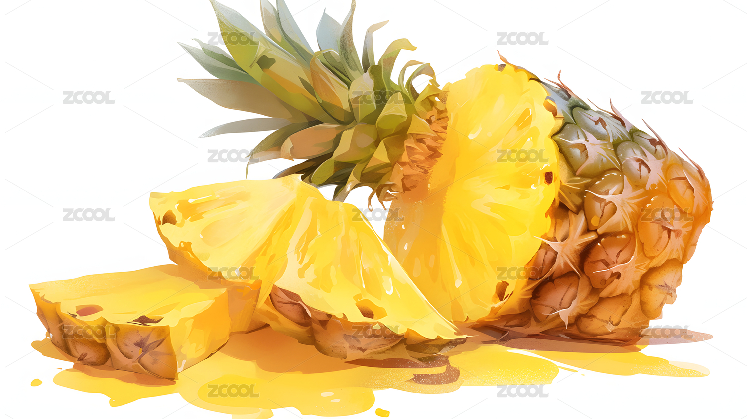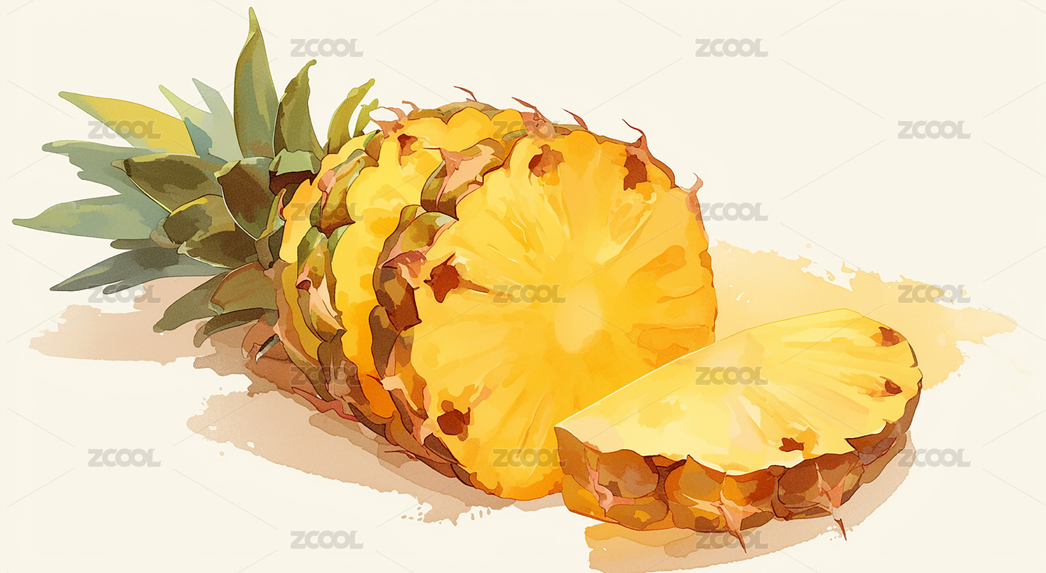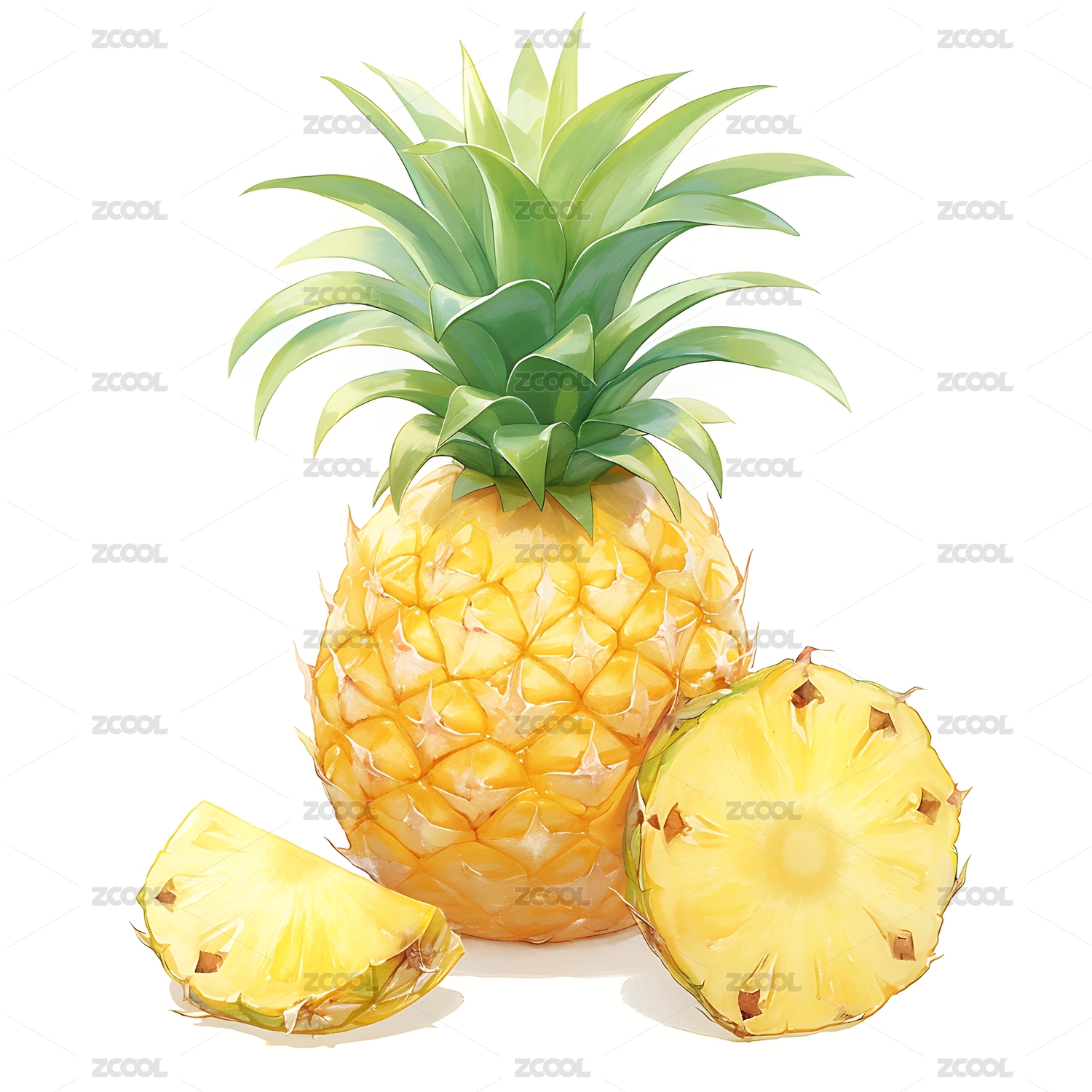 菠萝,切片,绿叶,草地,插画,矢量,模板,卡通,水果,装饰