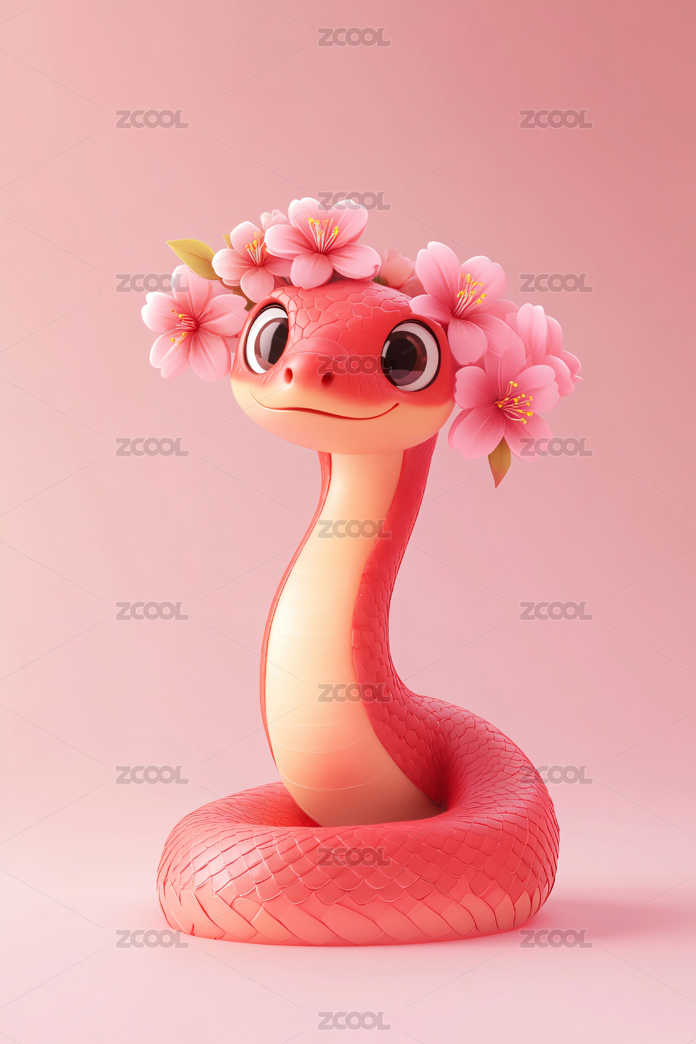卡通蛇,花朵,卡通,插画,可爱,艺术,微笑,色彩,柔和,背景