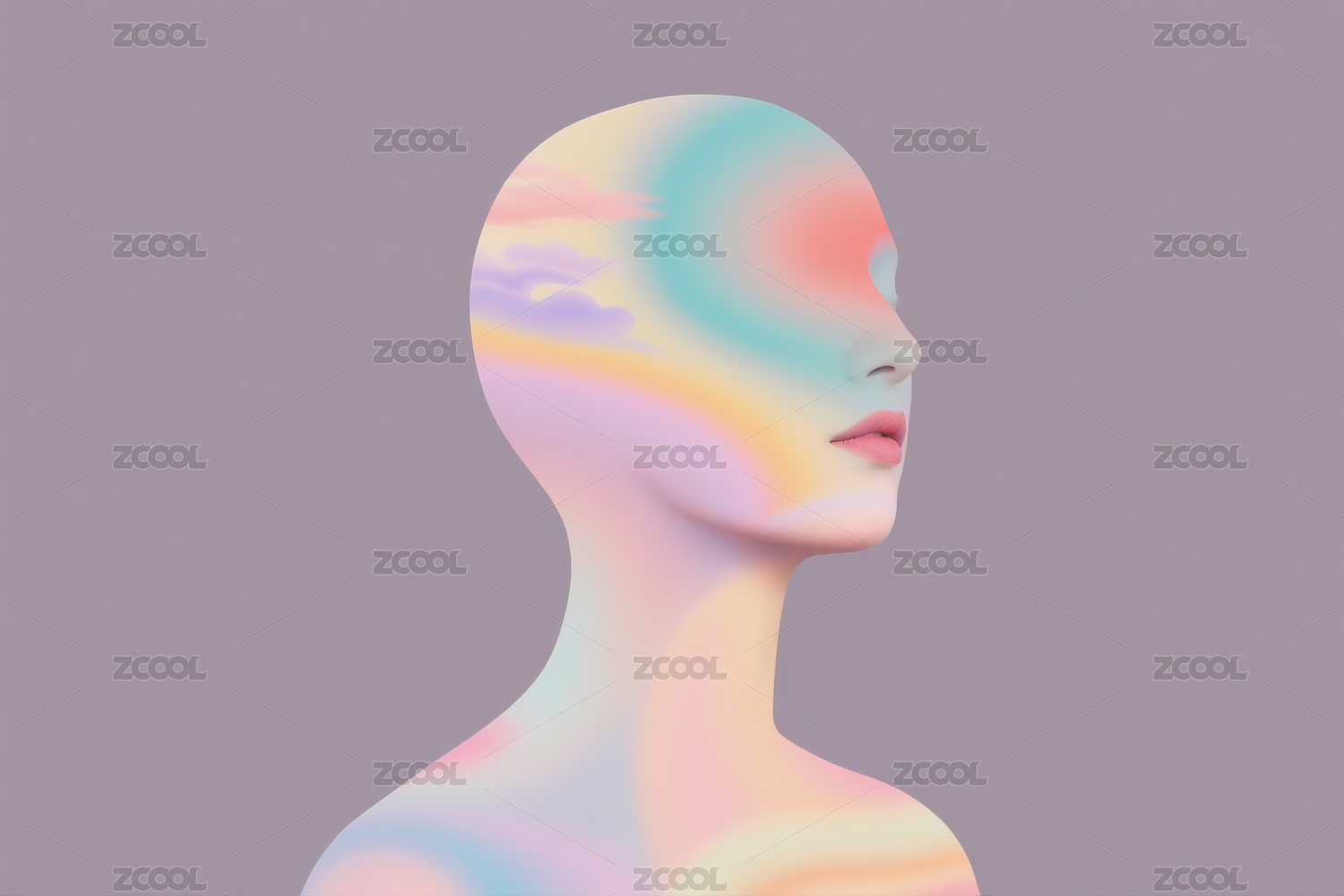 梦幻色彩中的女性侧脸