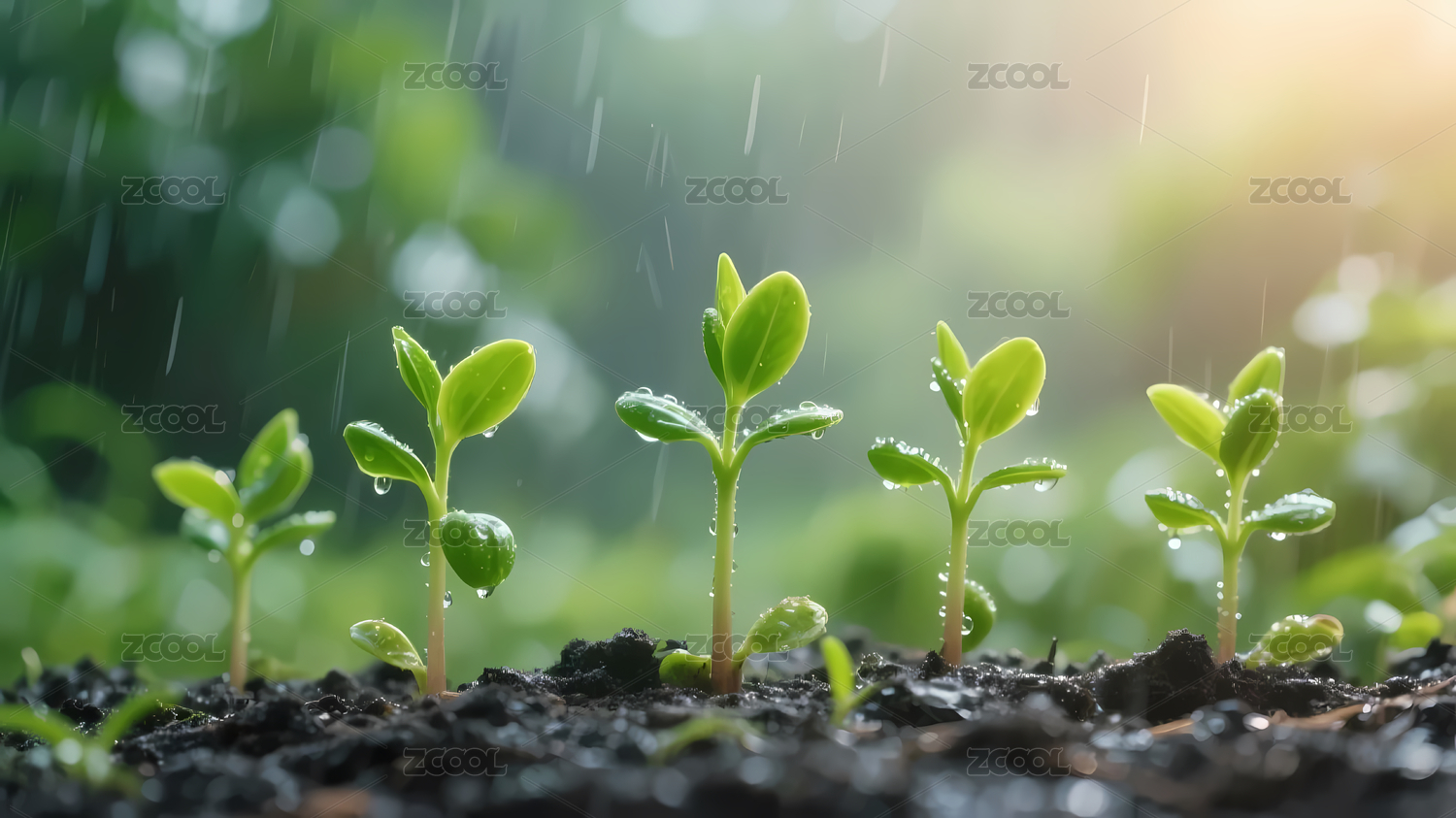 主视觉,商业,壁纸,幼苗,清新,雨中,生长,植物,嫩芽,土壤