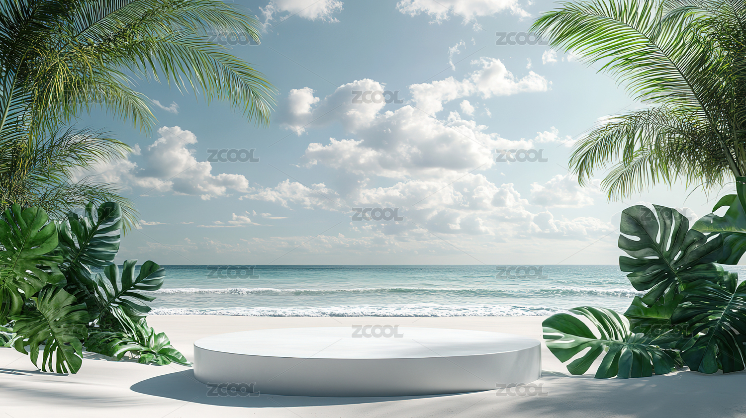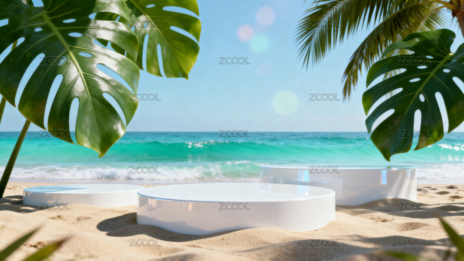 白色,绿叶,阳光,植物,圆形,蓝天,天空,叶子,海滩,海洋