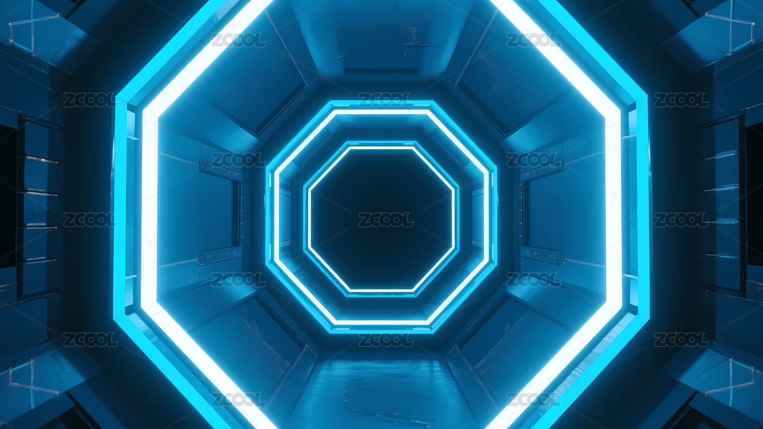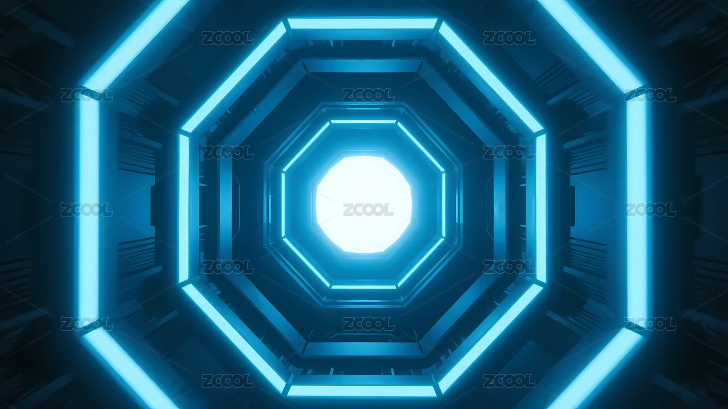 霓虹,未来,隧道,科技,光影,蓝色,空间,视觉,深度,延伸