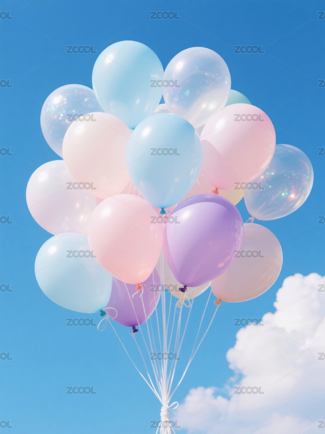 气球,彩色,蓝天,白云,飘浮,粉色,紫色,白色,天空,节日
