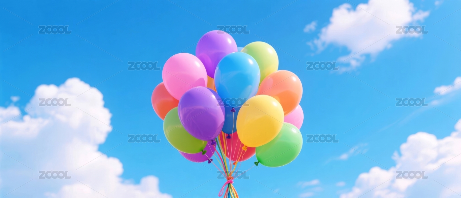 气球,彩色,蓝天,白云,飘浮,粉色,紫色,白色,天空,节日