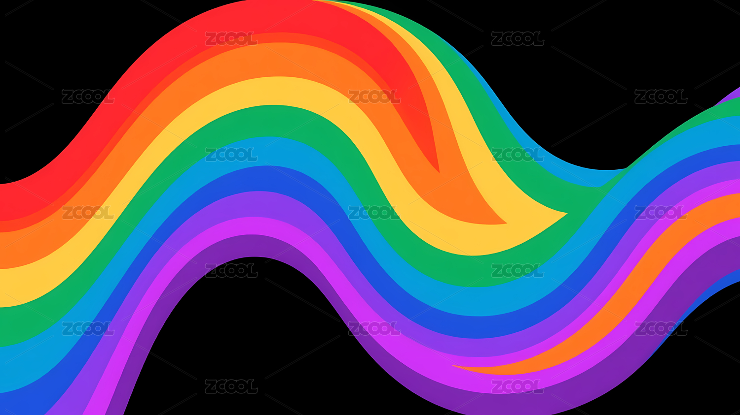 多色波浪线映衬黑色背景