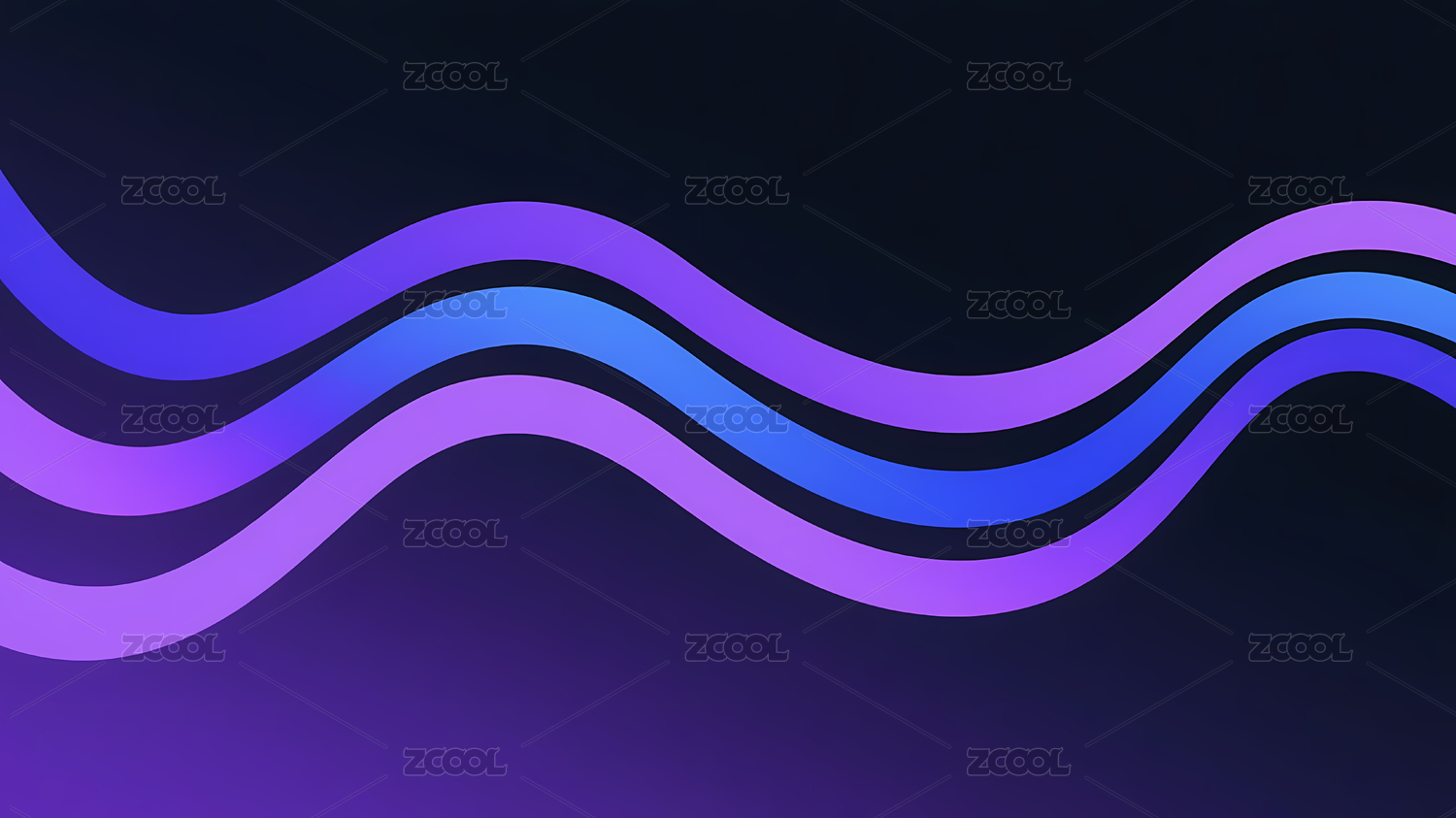 蓝紫渐变波浪线抽象艺术作品