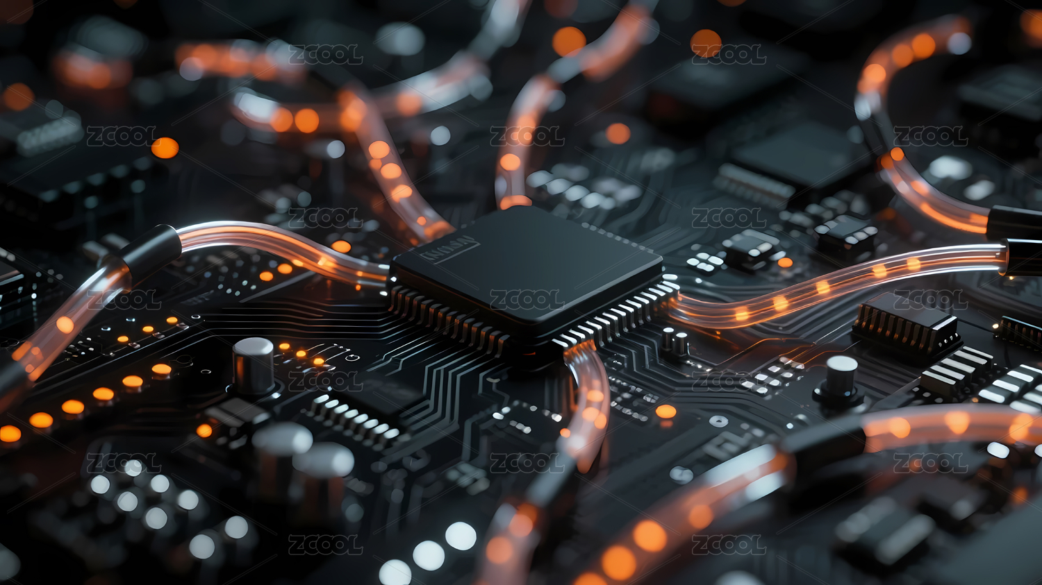 蓝色,金色,光线,电子,橙色,金属,高科技,电路板,精密,灰色