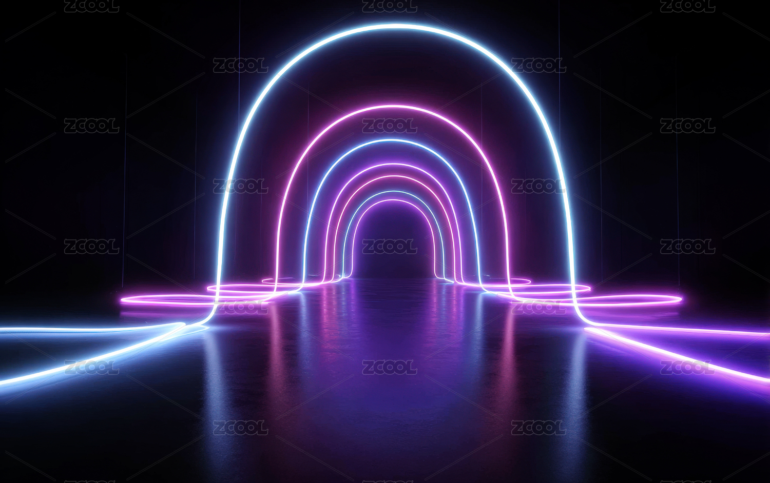 渐变,蓝色,紫色,科技,未来,霓虹灯,神秘,波浪,对称,隧道