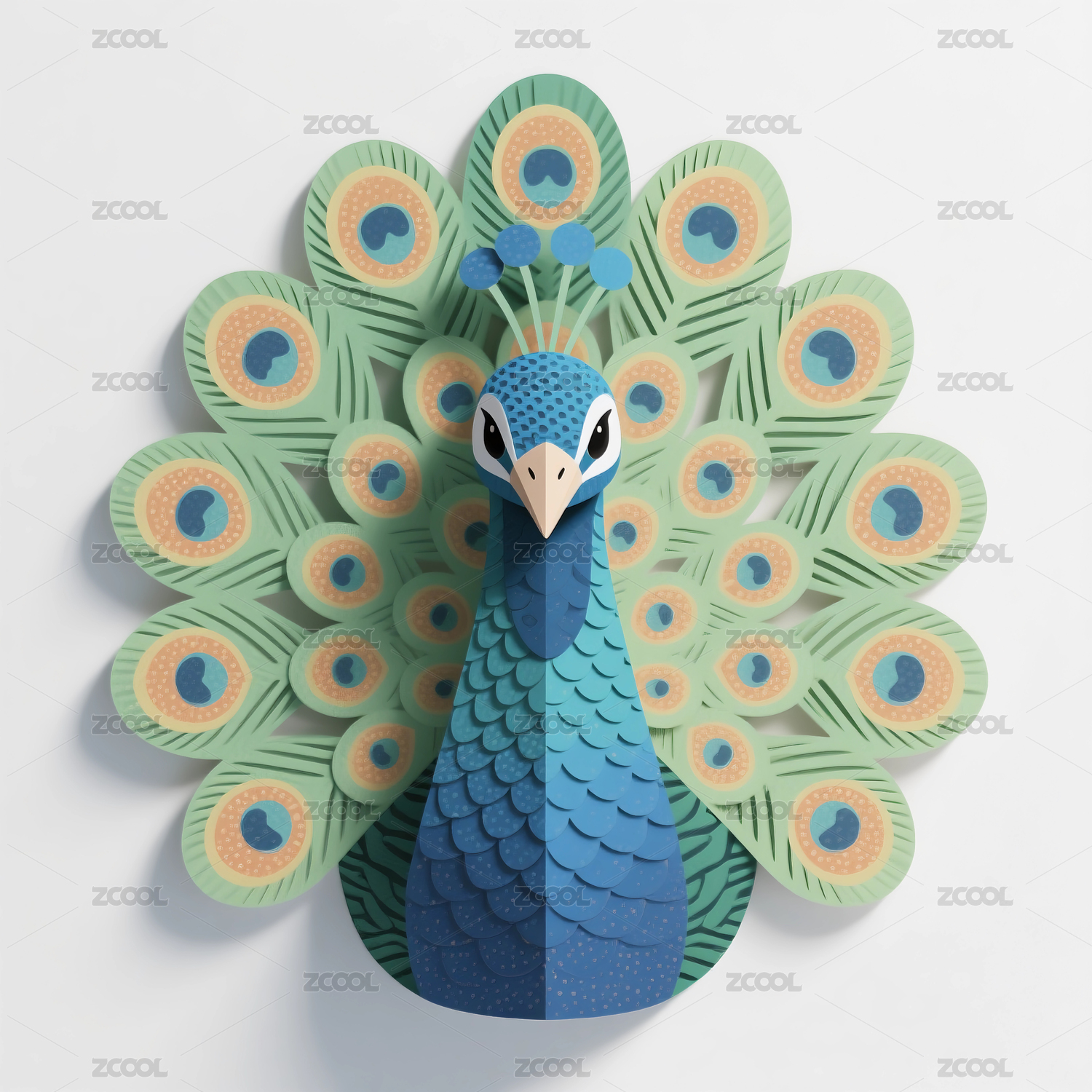 孔雀,纸艺,插画,花朵,叶子,艺术,装饰画,装饰,插画风格,矢量