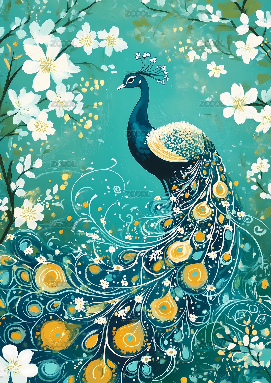 孔雀,花卉,插画,装饰画,艺术插画,手绘,矢量,模板,装饰元素,鸟类