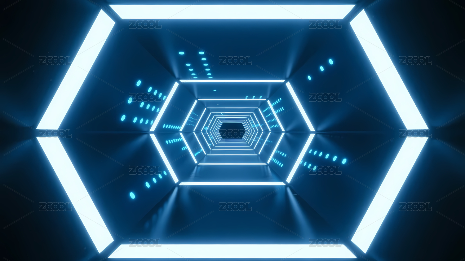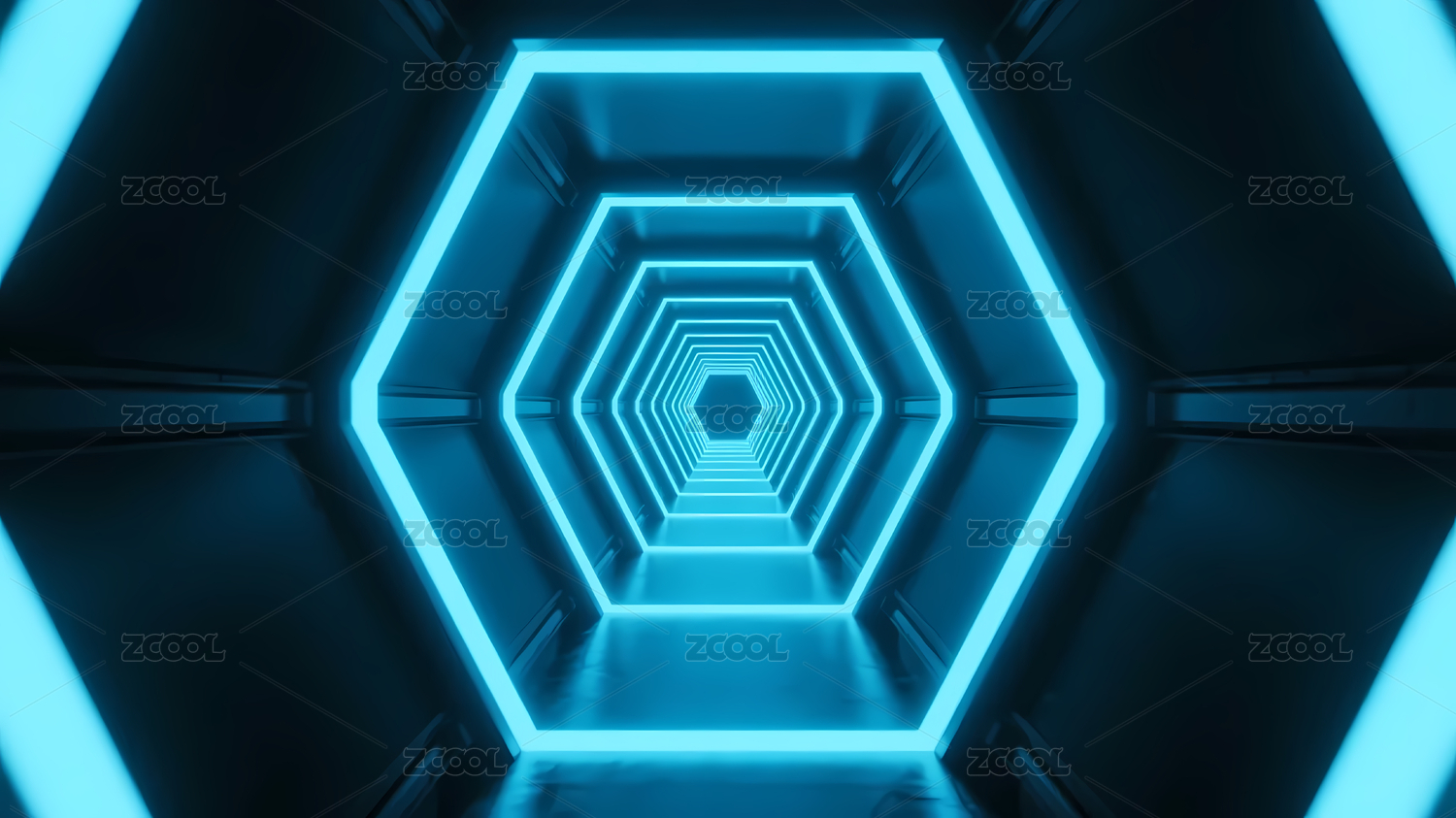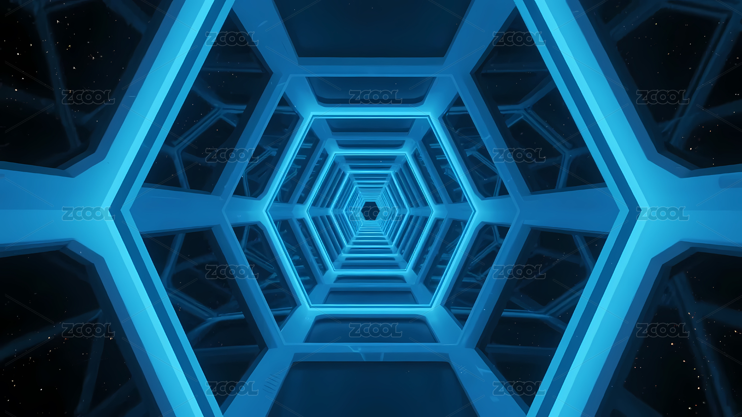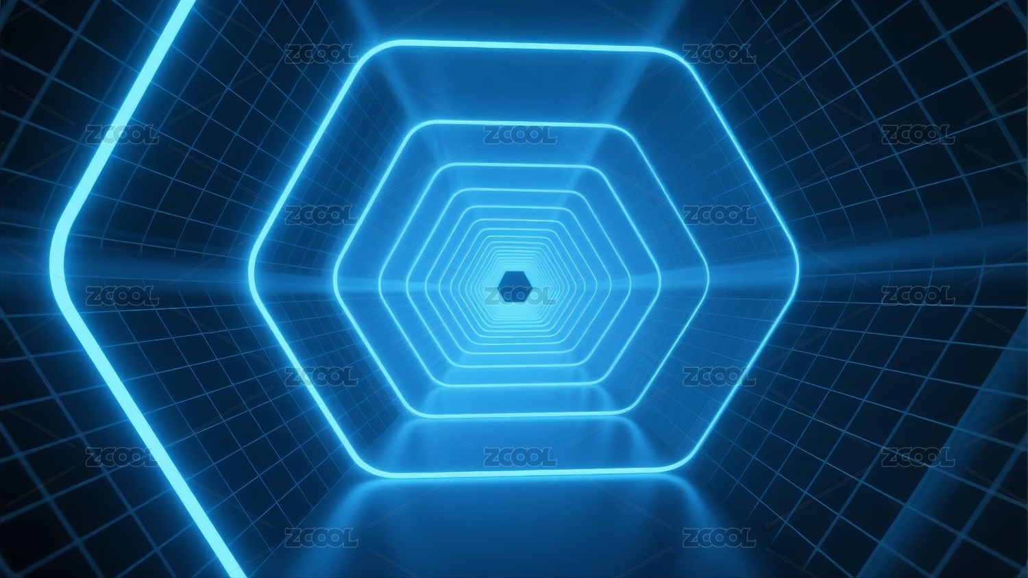 蓝色六边形光隧道