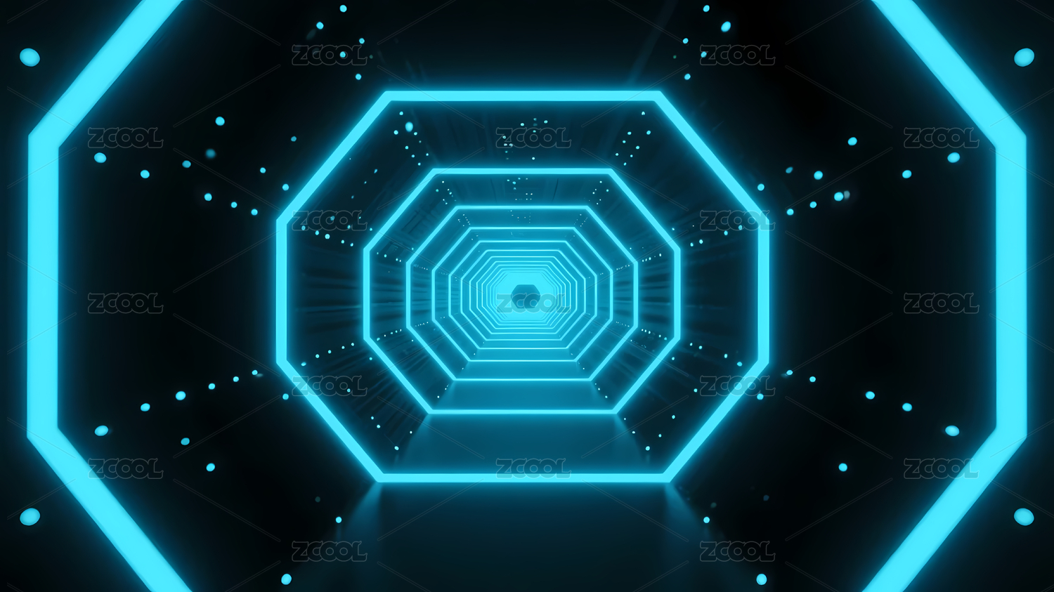 蓝色发光八边形隧道