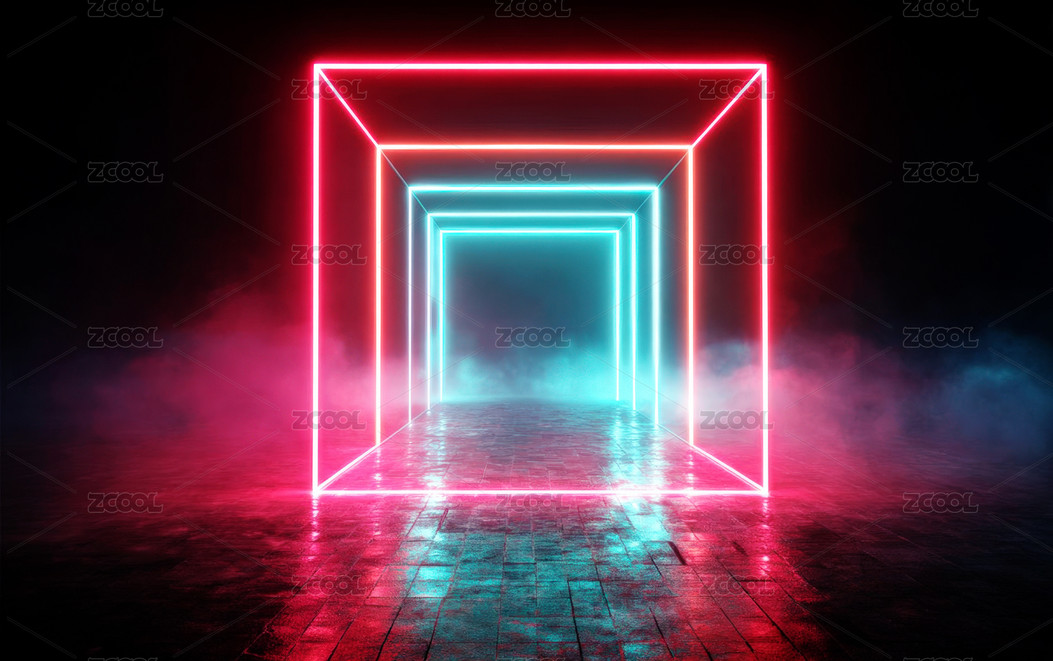 霓虹方框迷雾空间 梦幻神秘光影效果