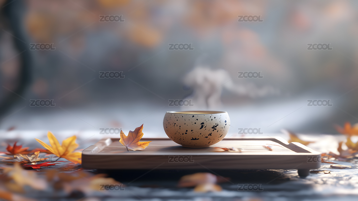 热茶与枫叶的温暖画面
