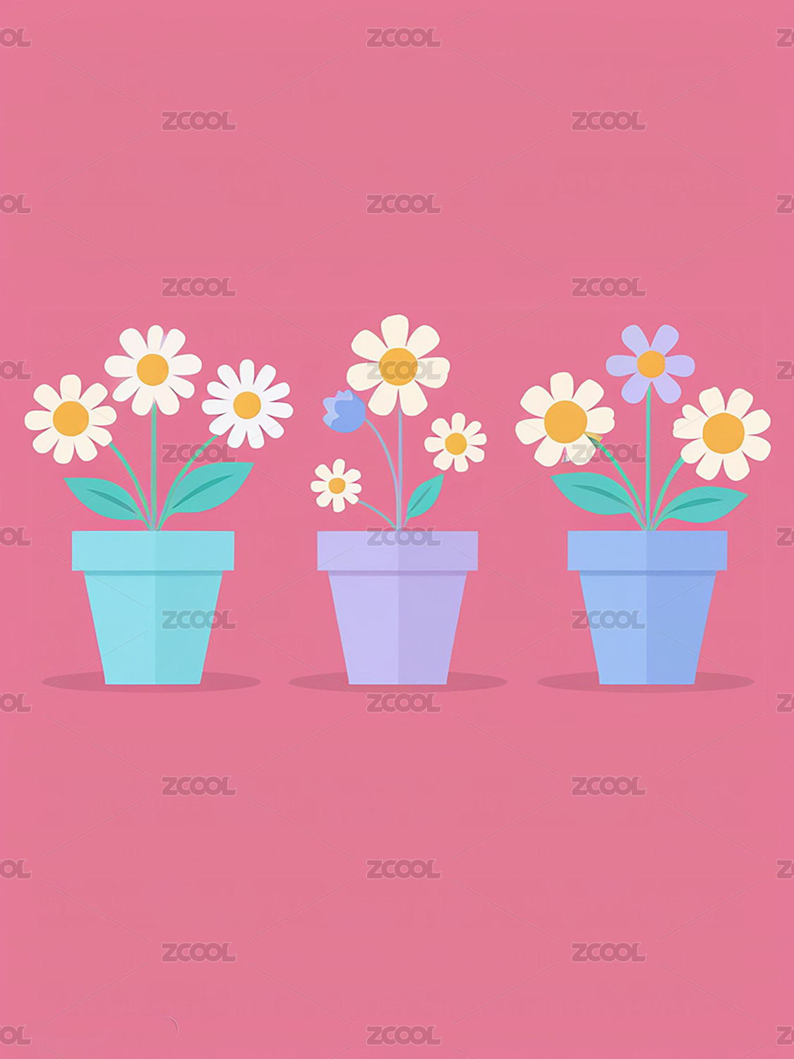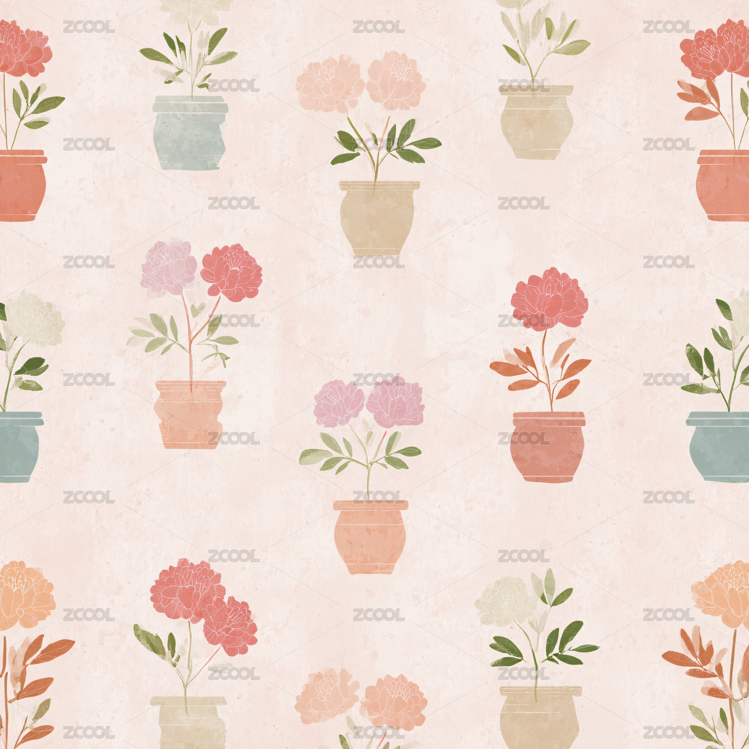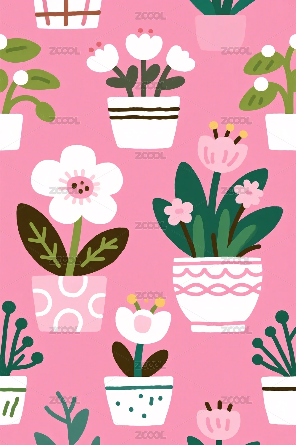 花卉,植物,花盆,插画,装饰,图案,背景,简约,柔色,粉色