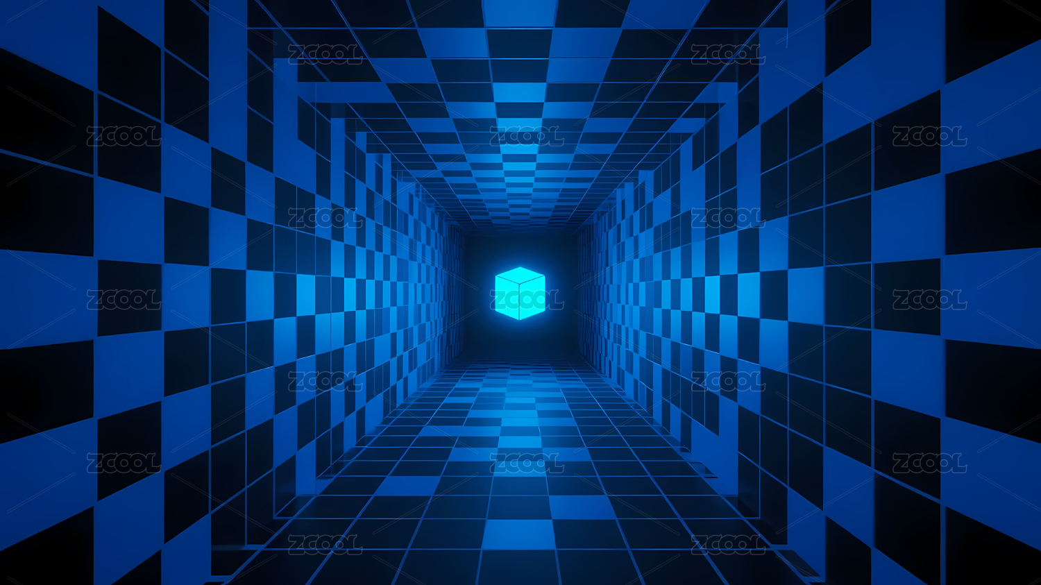 蓝色,科技,背景,黑色,未来,空间,隧道,光线,方块,纵深