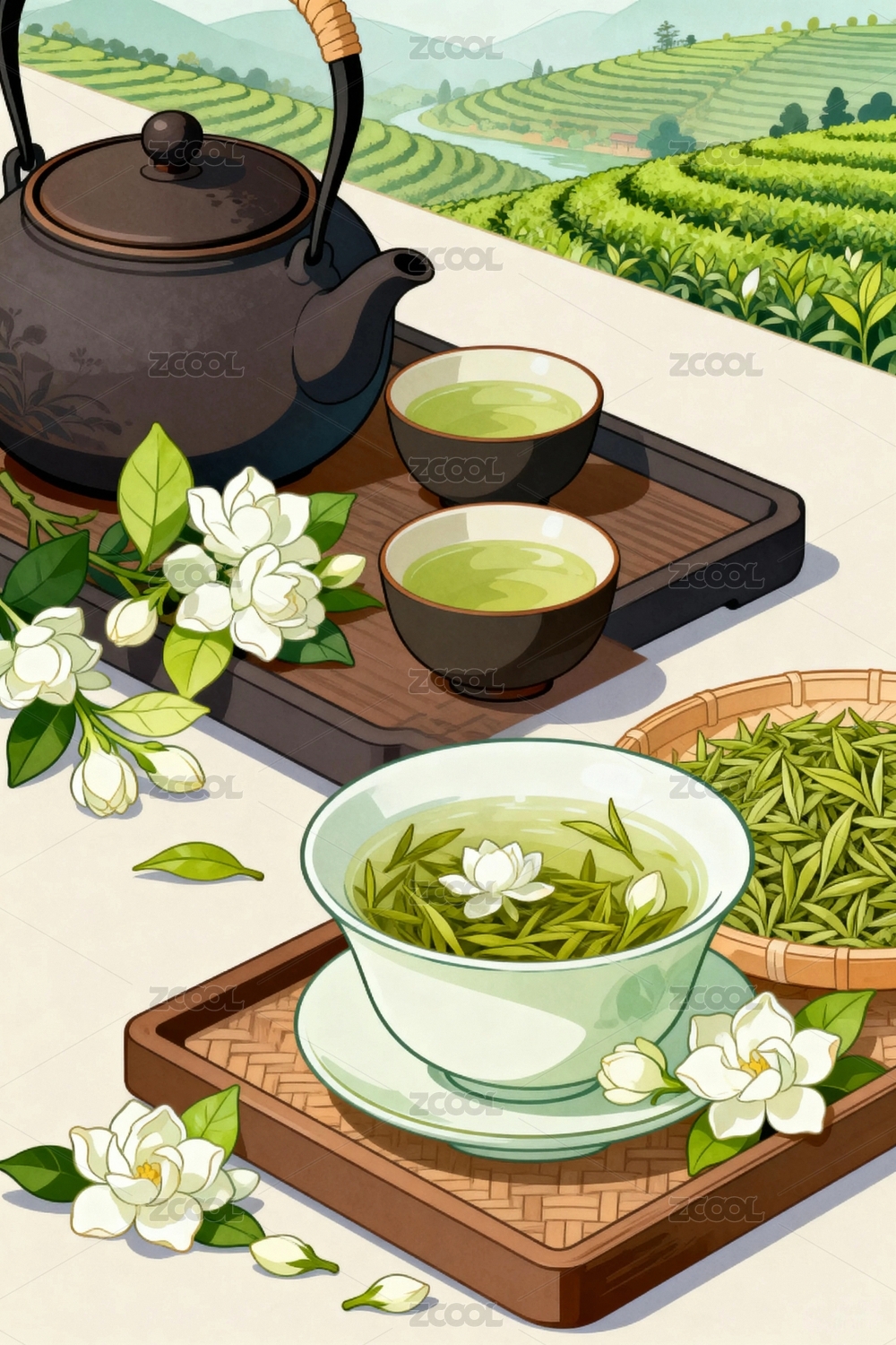 春茶,发芽,芳香,绿茶,花茶,新鲜,叶子,植物,有机茶,茶道