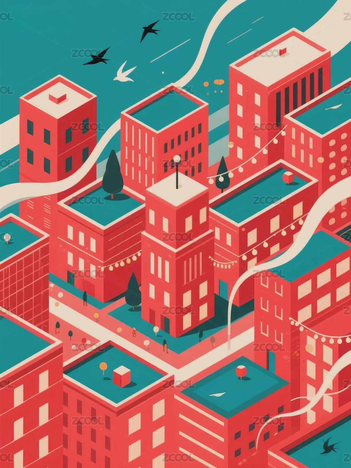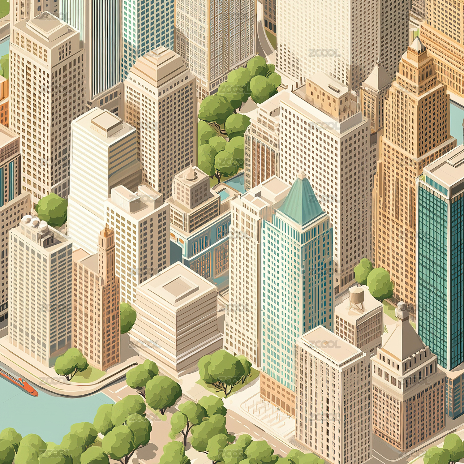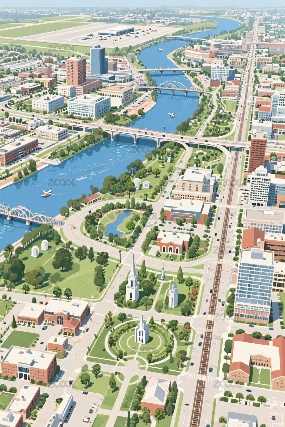 城市,建筑,河流,道路,插画,矢量,平面,地图,桥梁,绿地