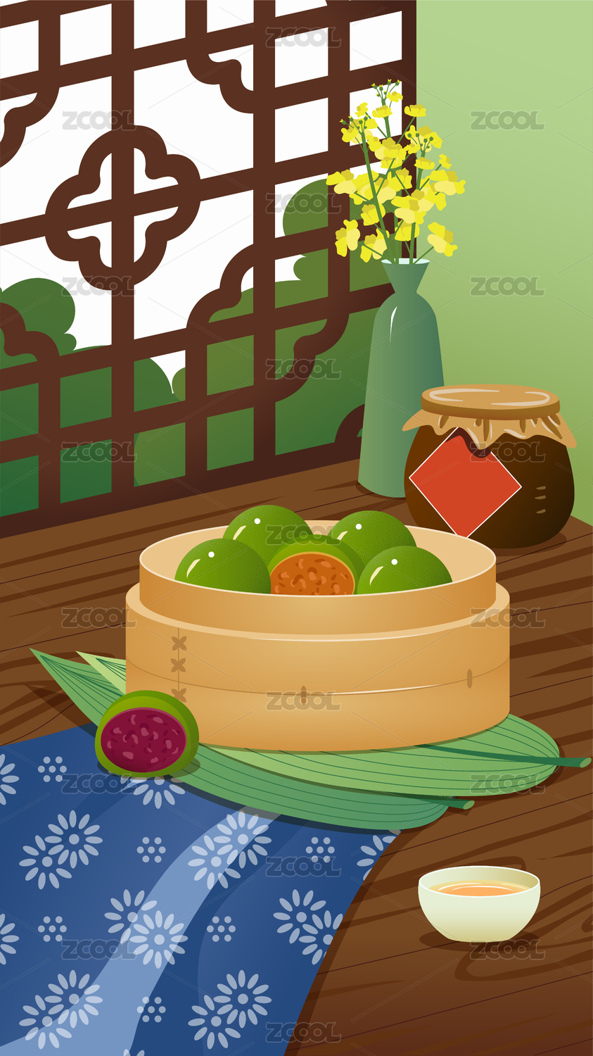小清新风格端午节包粽子插画背景