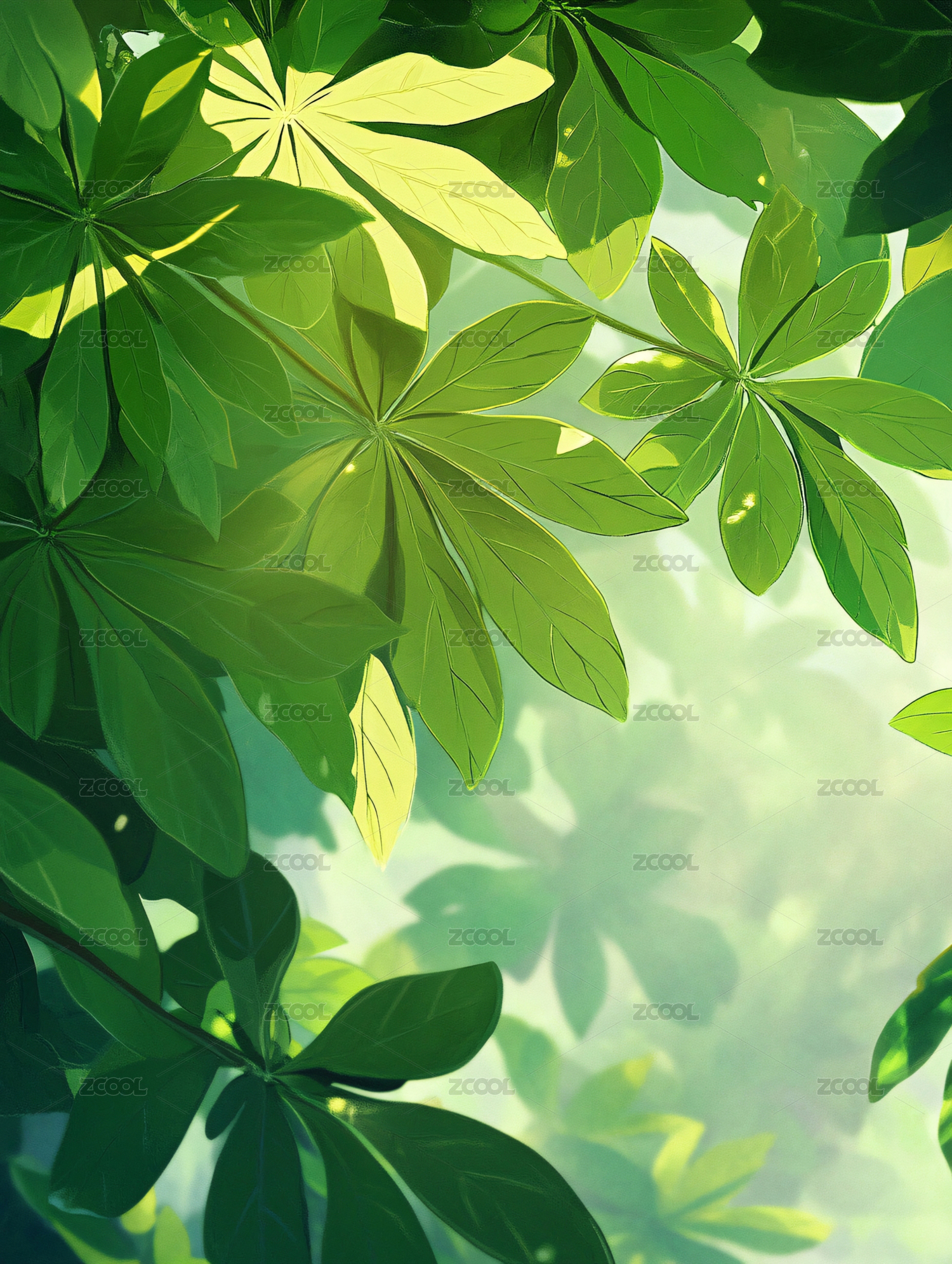 绿叶插画场景