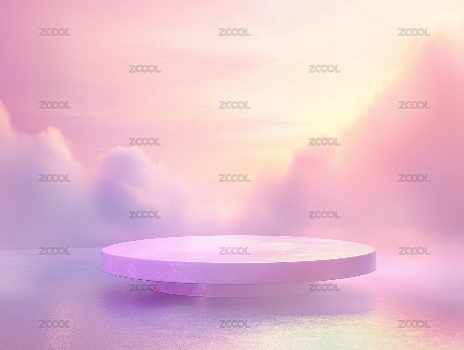 紫色圆形讲台云朵背景