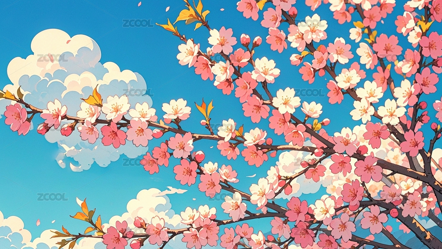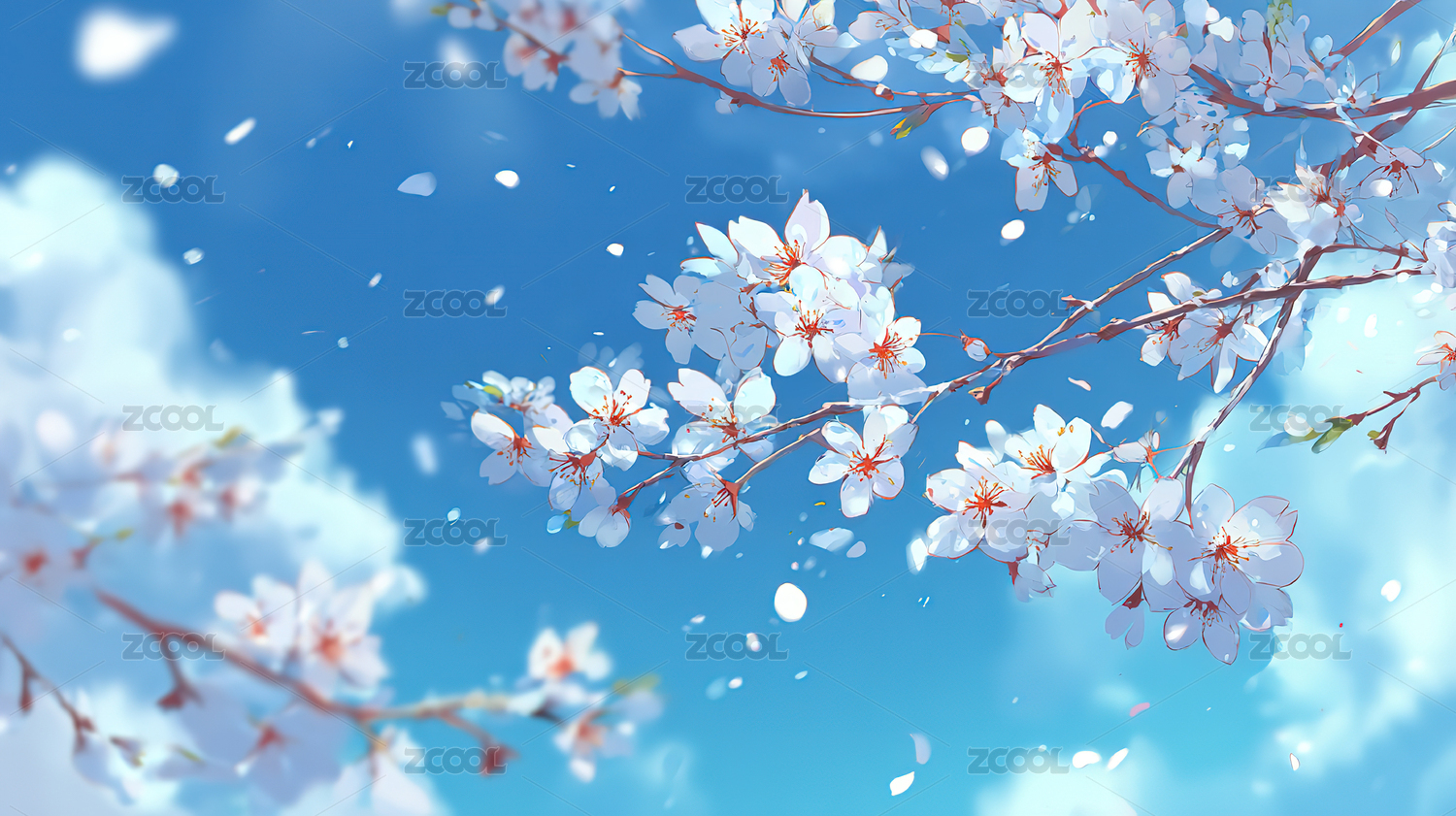 树,花朵,阳光,蓝天,白云,白色,绿叶,自然,花瓣,春天