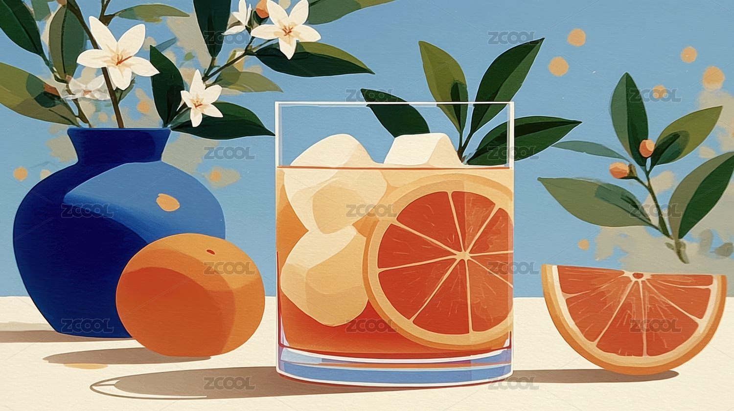 橙香花艺饮品插画