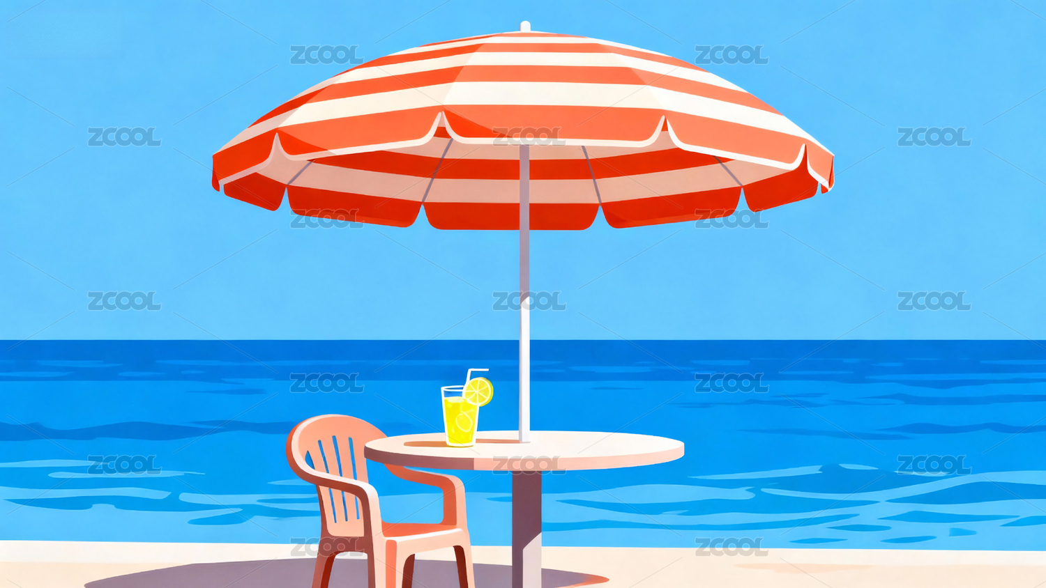 饮料,橙子,海洋,冰块,桌子,插画,海景,夏日,清新,矢量