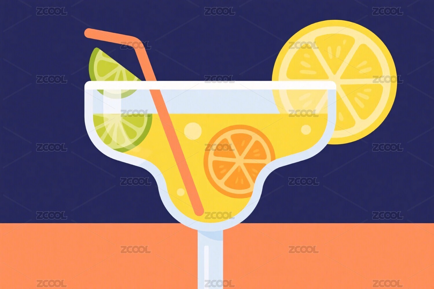 果汁,饮品,橙子,柠檬,吸管,冰块,插画,矢量,清新,色彩