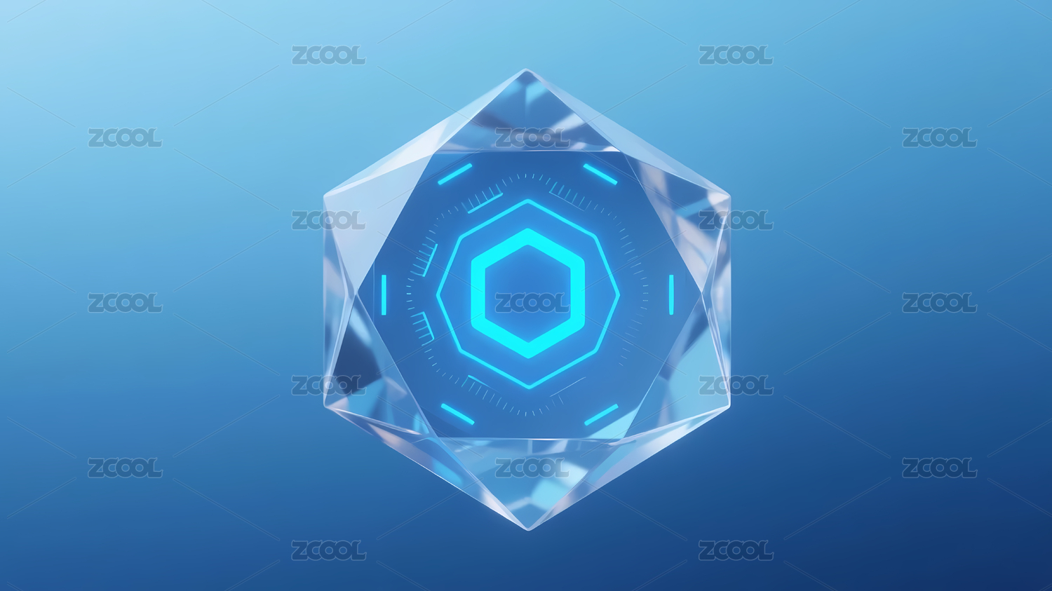 透明晶体与蓝色六边形