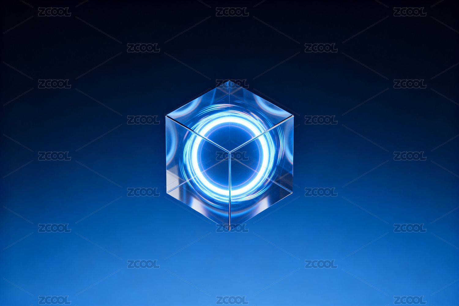透明立方体内部流动蓝色光效