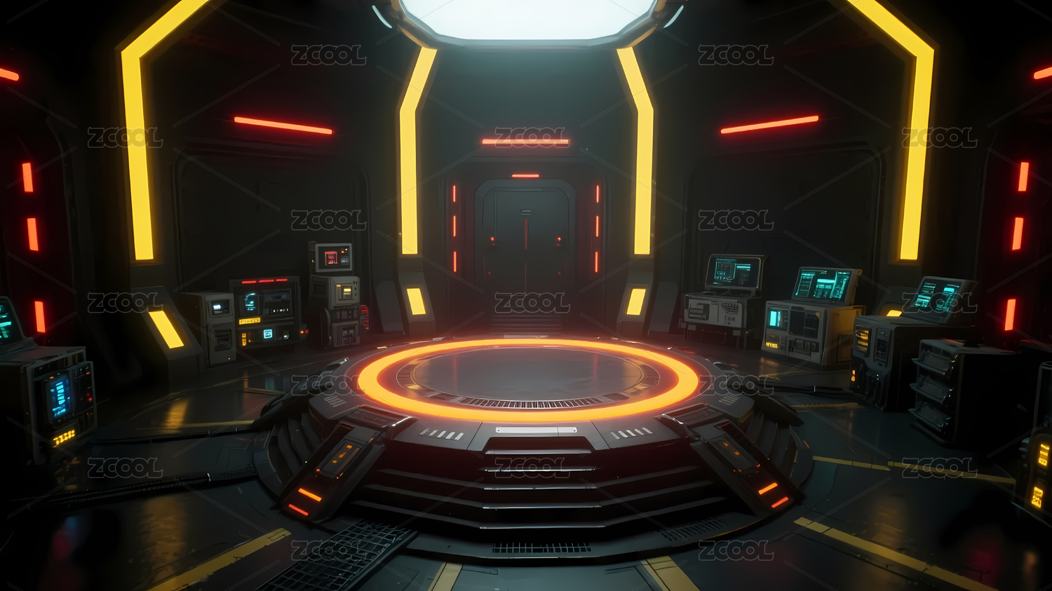橙色,科技,金属,深蓝,灯光,控制台,屏幕,驾驶舱,按钮,仪表盘