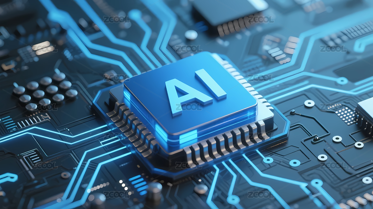 蓝色电路板AI标志