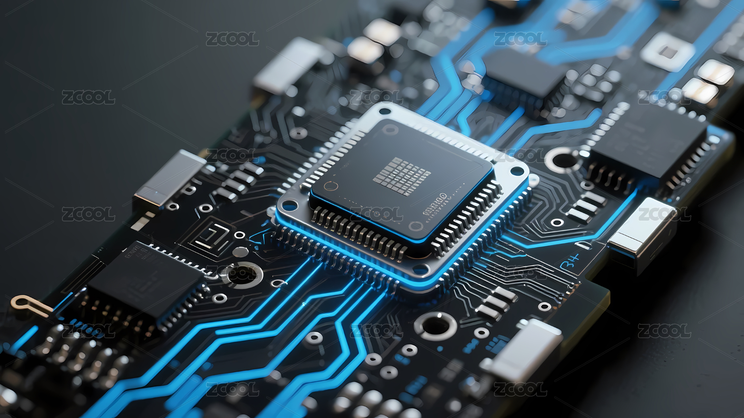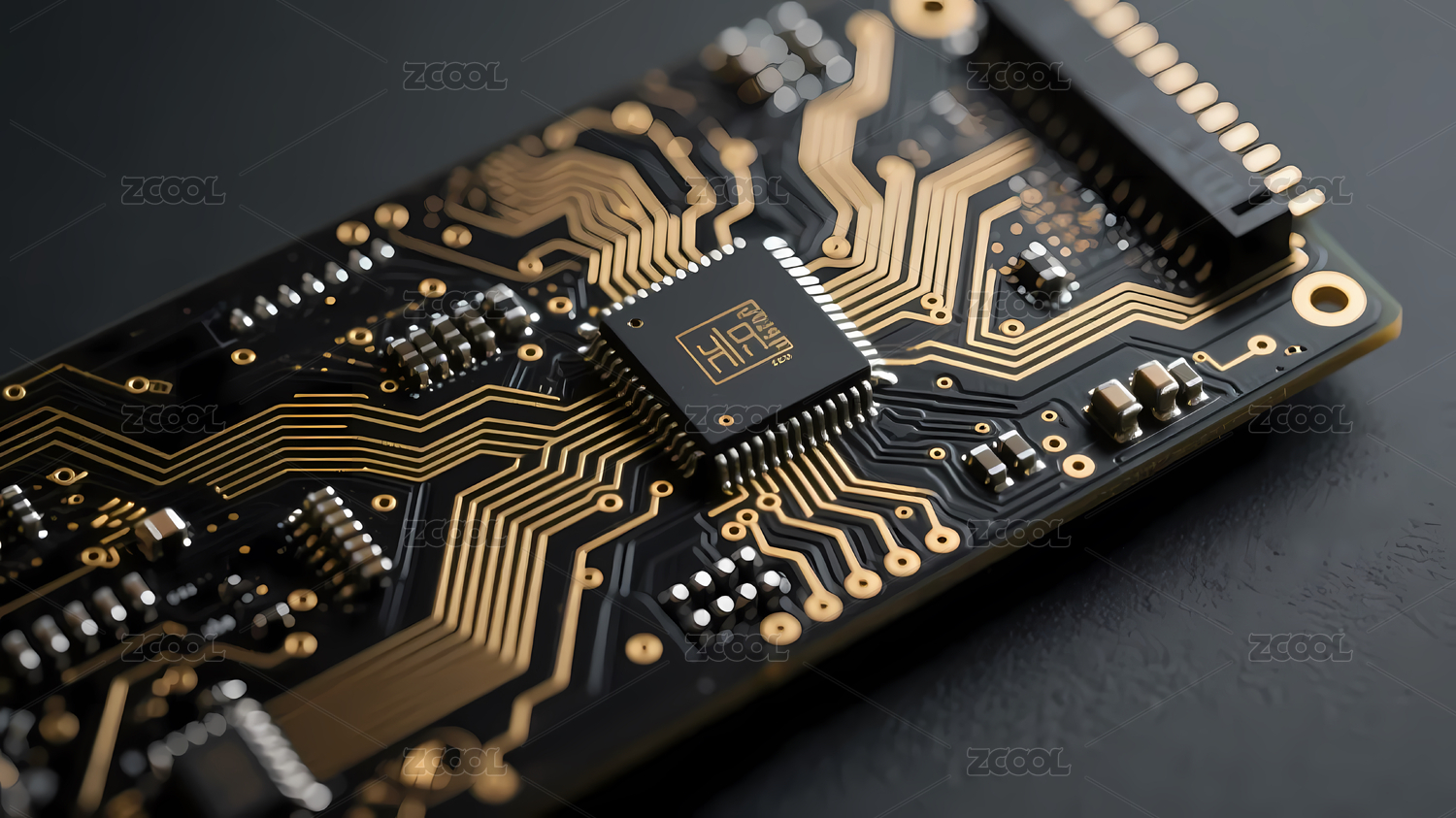 金色,黑色,科技,设计,复杂,电路板,电子,元件,精细,工业