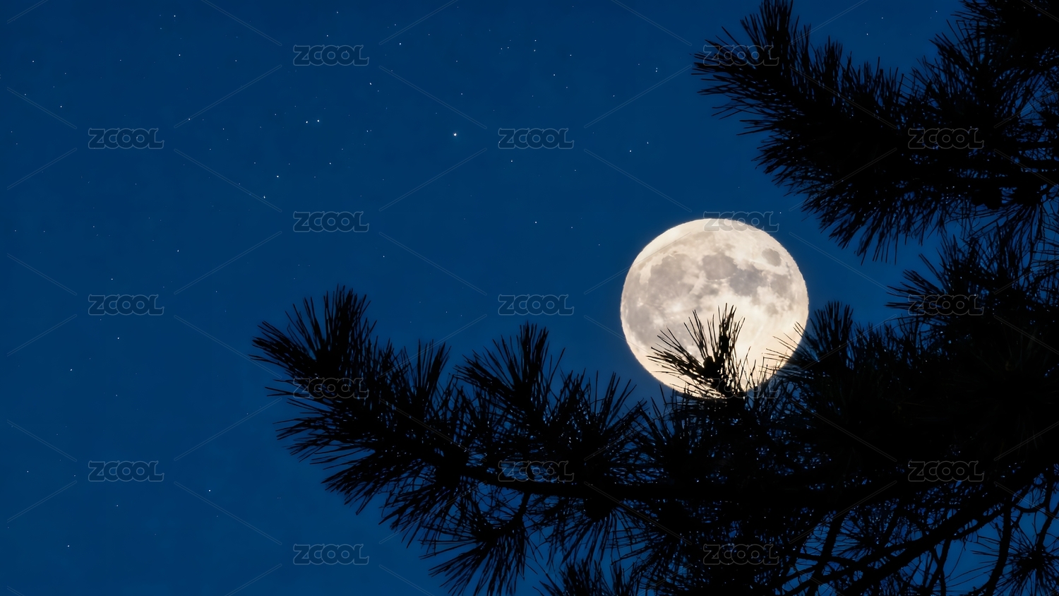 自然,月亮,夜景,夜空,夜晚,植物,蓝色,背景,圆形,枝干