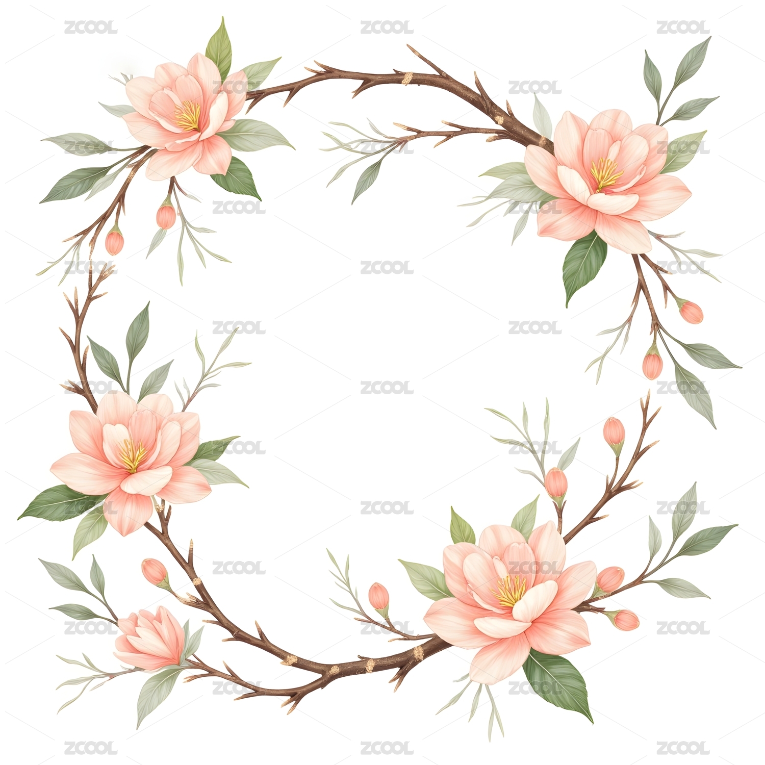 清新植物花朵花卉花环插画元素水彩风格