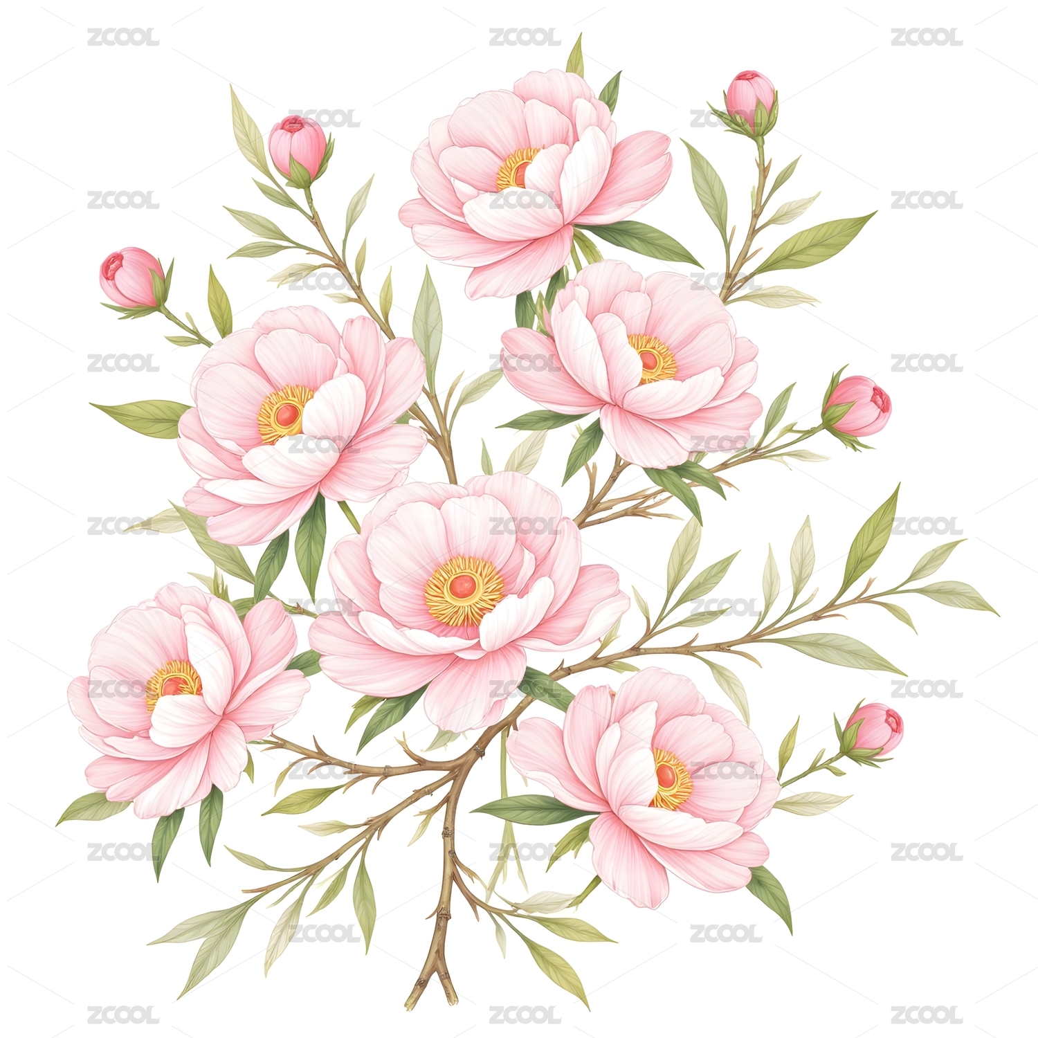 粉色花卉插画优雅绽放